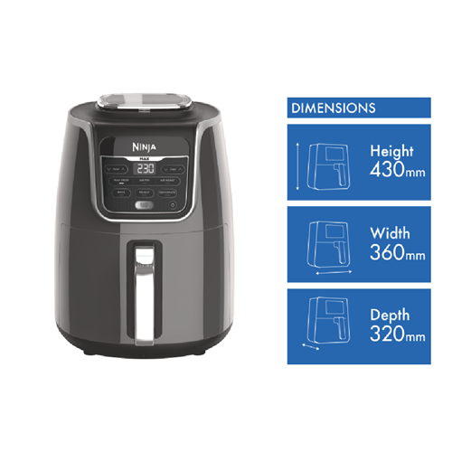Take your cooking to the next level with the Ninja Airfryer Deluxe. This powerful versatile air fryer lets you air fry roast reheat and dehydrate with little to no oil for quick and easy meals and snacks. The 5.2L capacity is perfect for families while the wide temperature range of 40-240°C gives you precise control. Cook everything from crispy chips to juicy roasts with 6 preset smart programs. The wide temperature range up to 240°C allows you to gently remove moisture from foods or quickly cook and crisp food with convection heat while the XL non-stick ceramic coated basket is easy to clean. With a sleek black finish and digital controls this Ninja air fryer looks great on any countertop. The 2 year warranty provides peace of mind. Unlock the possibilities with the Ninja Airfryer Deluxe. The manufacturer's part number for this product is AF160. Check it out today.