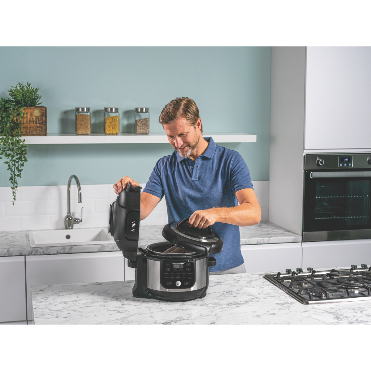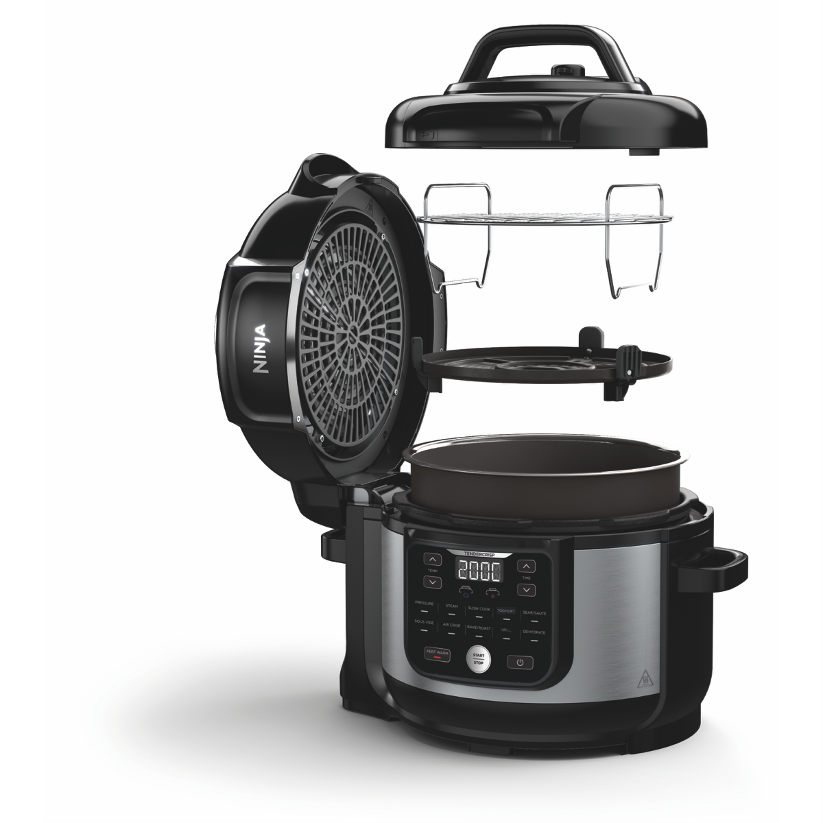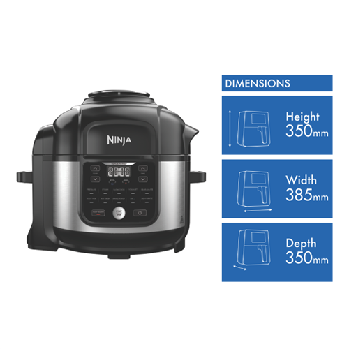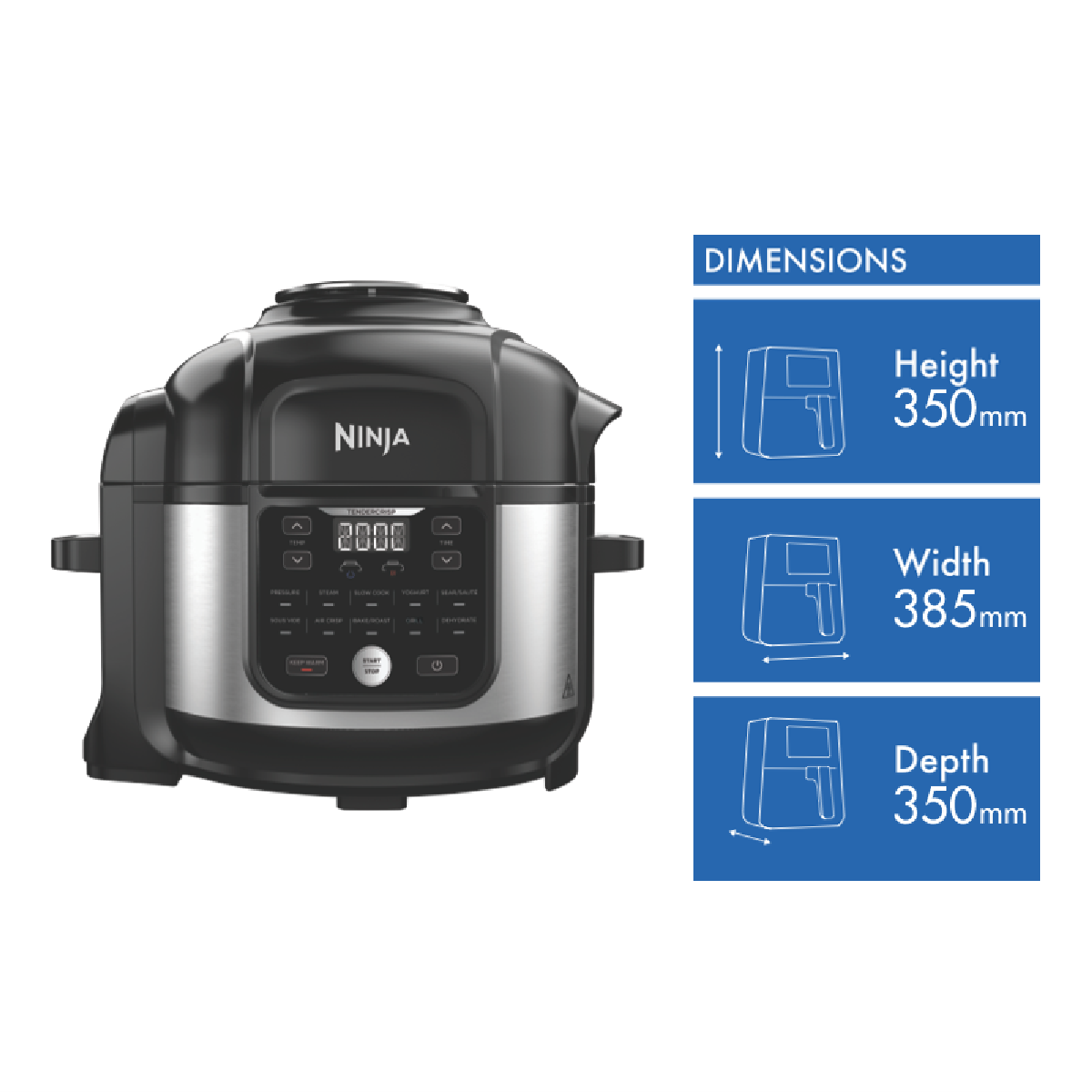 Transform your kitchen into a culinary powerhouse with the versatile Ninja Foodi Pro 11 In 1 6 Litre Multi Cooker. This innovative multicooker has 11 smart functions including Air Fry Bake/Roast Grill Pressure Cook Steam Slow Cook Sear/Sauté Keep Warm Sous Vide Yoghurt and Dehydrate. Cook healthy meals fast with TenderCrisp technology that quickly pressure cooks ingredients then finishes with a crispy golden air fry. The 6 litre ceramic coated non-stick pot and cook & crisp plate are PFOA-free and easy to clean. With a temperature range from 40 to 200 degrees Celsius you can precisely cook everything from tender meats to perfectly crisp fries. This 1460 watt multicooker makes meal prep simple with 45 chef-inspired recipes. Conveniently prepare breakfast lunch dinner and desserts like air fried chicken steamed veggies braised short ribs fluffy rice and more. The reversible rack provides extra cooking options. Get versatile cooking power with advanced safety features in a sleek black design. Ninja backs this multicooker with a 2 year warranty. The manufacturer's part number for this product is OP350. Discover how the Ninja Foodi Pro 11 In 1 6 Litre Multi Cooker can unlock a world of delicious possibilities in your kitchen every day.