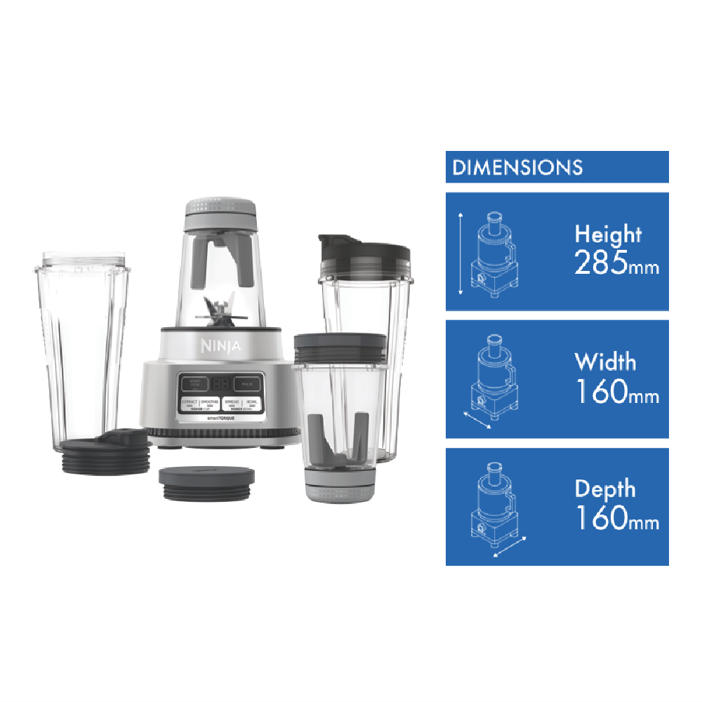 Take your blending and mixing game to the next level with the Ninja Precision Blend and Mix. With 1100 Watts of power and Hybrid Edge Stainless Steel Blades this versatile blender makes quick work of smoothies soups dips and more. The two 700ml Power Nutri Cups are great for personal smoothies on the go while the 400ml Power Nutri Bowls with storage lids let you prep sauces and dips in advance. Four Auto-iQ Programs take the guesswork out of drink and bowl making. SmartTORQUE technology provides consistent power and precision for perfect results every time. The sleek silver design looks great on any countertop and all attachments are dishwasher safe for easy cleanup. With advanced features like preset programs and portable blending cups this Ninja blender aims to make your life easier. The manufacturer's part number for this product is CB102. Bring professional performance home with the Ninja Precision Blend and Mix today.