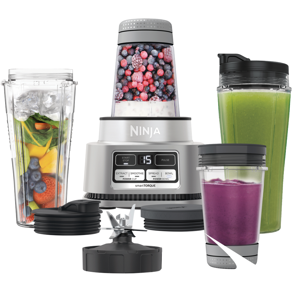 Additional Features SmartTORQUE powers through heavy loads without stalling or needing to stir/shake, Cups for smooth drinkables and Bowls for less liquid, thicker smoothies or nut butters, Power Paddle in bowls pushes ingredients toward the blade