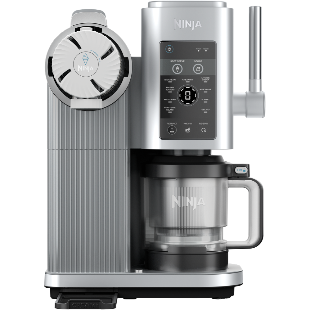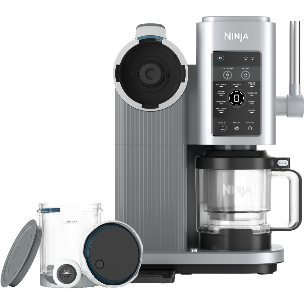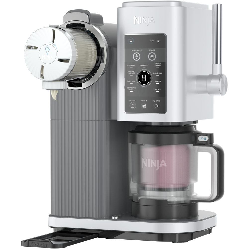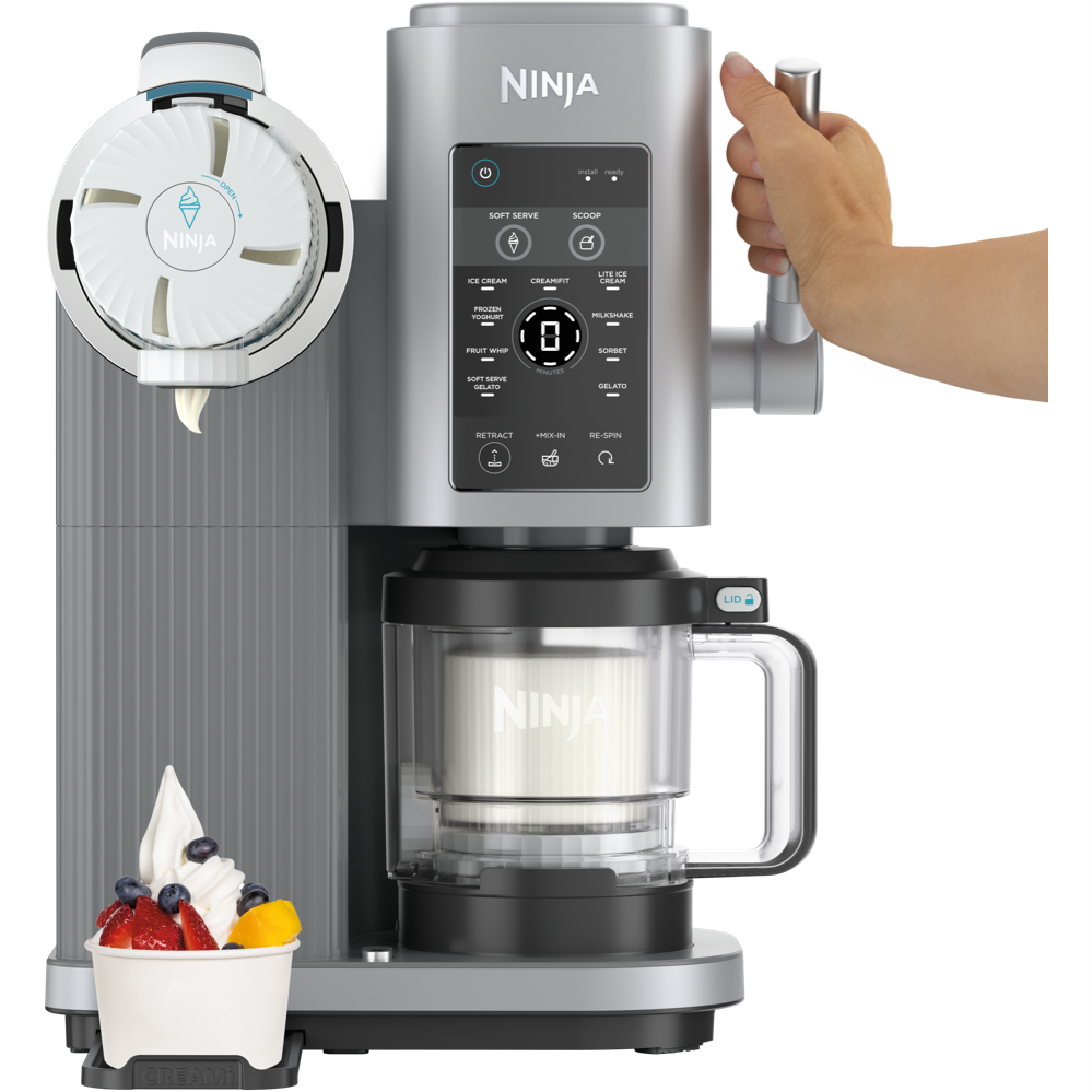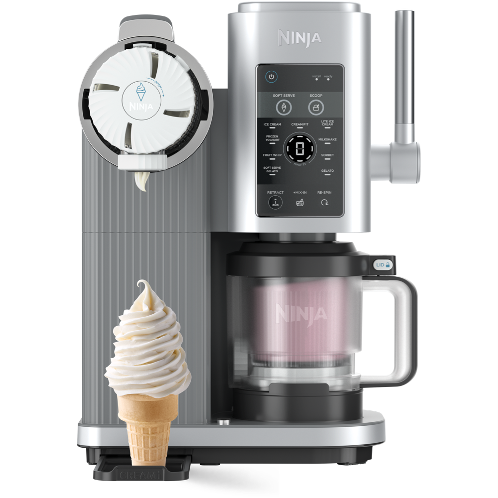 Create soft serve treats at home with the Swirl By Creami ice cream maker featuring two 470ml tubs for making delicious frozen desserts. This powerful 850W machine offers 13 different programs including six soft serve options like Ice Cream and Fruit Whip plus six scoop programs and a Mix-in Program. The Soft Serve Creamify Technology spins at faster speeds to create smooth creamy textures while letting you control ingredients for dietary preferences like dairy-free or vegan options. Clean-up is easy with dishwasher-safe tubs lids paddle and swirl press. Comes with a 2-year warranty. Model NC701.