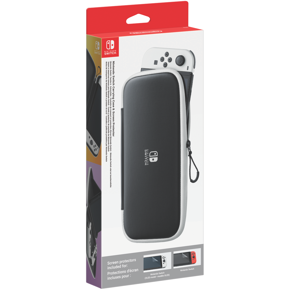 Safeguard your new Nintendo Switch OLED on the go with this handy carry case and screen protector set. Custom designed for the Switch OLED model this protective case securely holds your console and accessories with its smartly divided interior storage. Your Switch OLED screen stays scratch-free thanks to the included ultra-clear HD screen protector that effortlessly attaches for daily protection. With a 1-year warranty you can game carefree knowing your Switch OLED is shielded in a lightweight yet high-quality case. For portable peace of mind choose the Nintendo Carry Case & Screen Protector and keep your gaming investment safe wherever you play. The manufacturer's part number for this product is 43150. Check it out today for your new Nintendo Switch OLED.