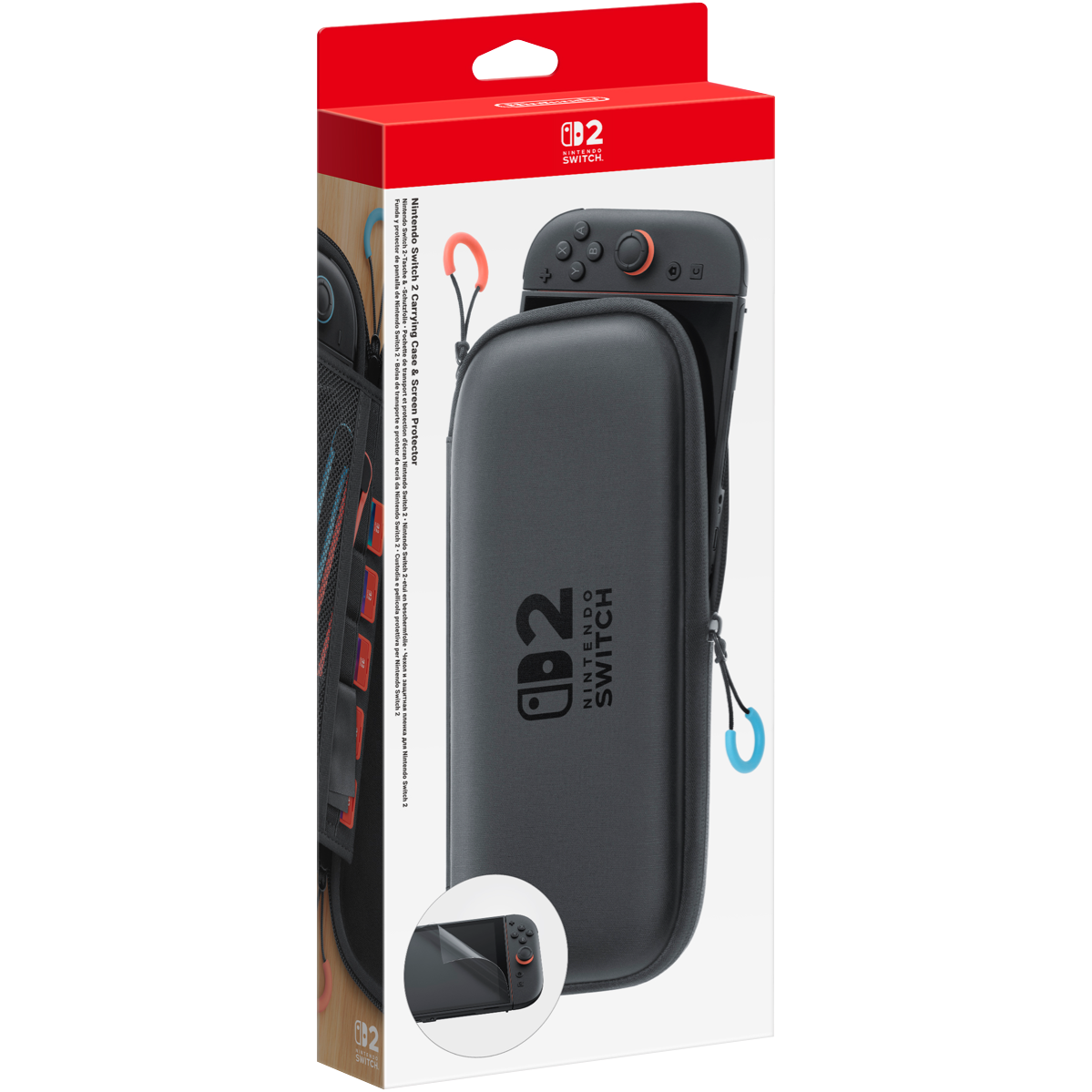 Need to keep your Nintendo Switch 2 safe when you're on the move? This black carrying case is just what you need. It comes with a screen protector to guard against scratches and bumps while you're out and about. The case is specially made to fit your Nintendo Switch 2 perfectly giving it the protection it deserves. Just remember this is only the case and screen protector - you'll need to add a Nintendo Switch 2 system Joy-Con 2 controllers and Joy Con 2 straps separately. This handy accessory comes with a 1-year warranty to game with peace of mind.