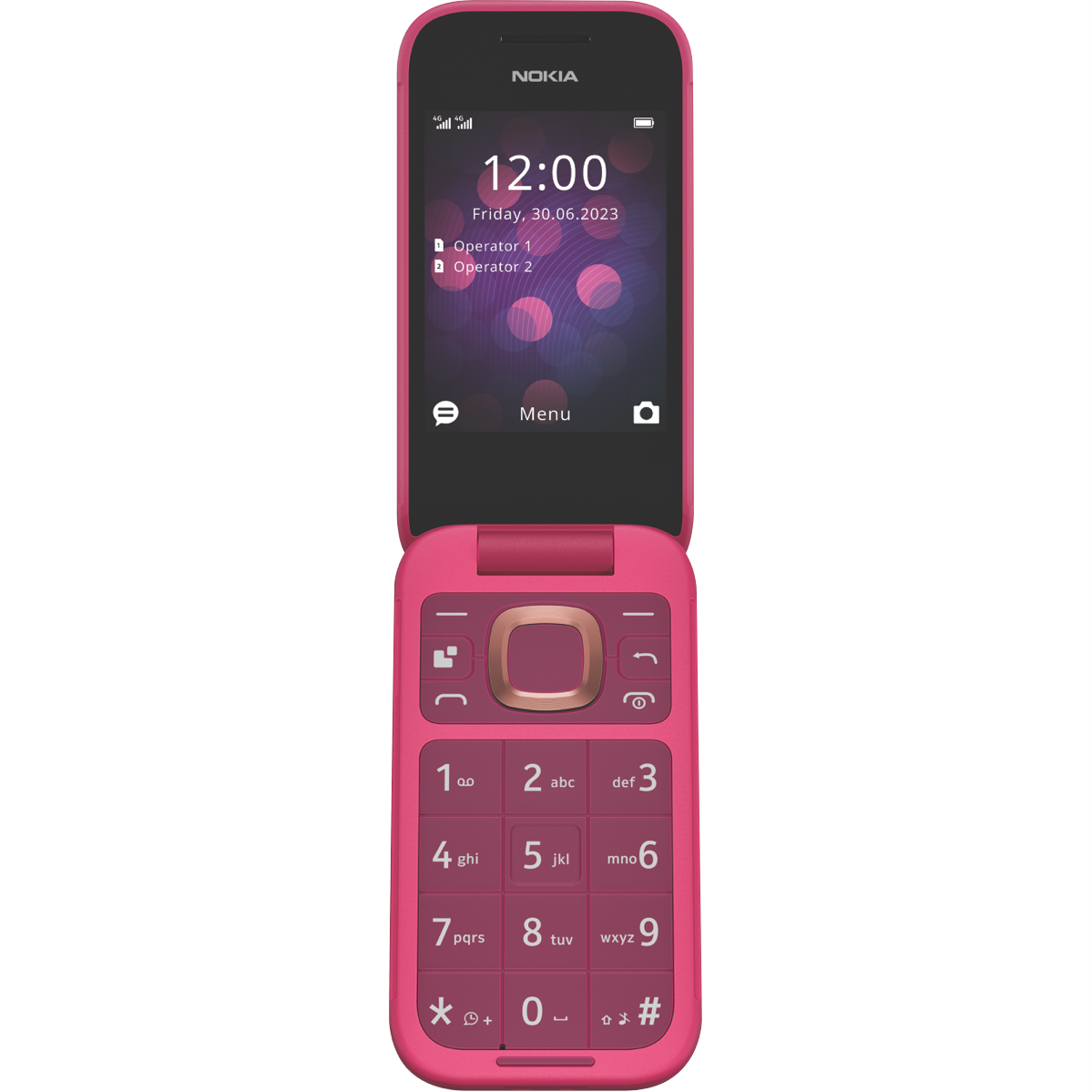 Looking for a simple and reliable flip phone that's easy on the eyes? Meet the Nokia 2660 Flip in a pretty Pop Pink color. This dual SIM phone lets you stay connected on GSM 3G and 4G LTE networks. The 2.8 main display and 1.77 external screen give you all the essentials at a glance. Snap quick pics with the 0.3MP rear camera and expand the 128MB storage up to 32GB with a microSD card. Powered by a 1450mAh removable battery this compact phone measures just 55 x 108 x 18.9mm and weighs only 123g. The Nokia 2660 Flip (5783439) comes with a 24-month warranty for extra peace of mind.