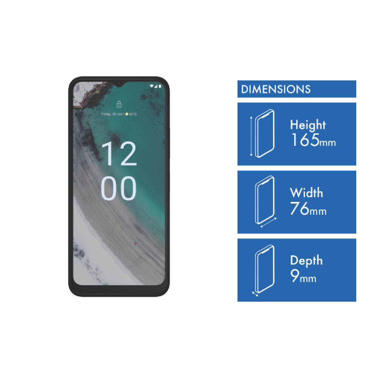 Capture life's special moments with the sleek new Nokia C32 smartphone. This 4G LTE device features a large 6.52 HD+ screen perfect for watching videos browsing photos or streaming movies on the go. The 50MP rear camera and 8MP front camera allow you to snap high-quality photos and capture crisp 1080p full HD videos. With 64GB of storage and support for up to 256GB of expandable memory you'll have plenty of room for apps media files and more. Running on Android 13 the C32 keeps you connected with Wi-Fi Bluetooth 5.2 and GPS. The long-lasting 5000mAh battery provides all day power. Weighing just 199g the durable polycarbonate body with IP52 water resistance allows it to withstand splashes and spills. Packed with a powerful octa-core processor 4GB RAM and generous connectivity options like a 3.5mm audio jack the Nokia C32 brings convenience and reliability. For additional peace of mind the phone comes with a 2 year warranty. The manufacturer's part number for this product is 5735417. Learn more about the features and capabilities of the Nokia C32 today.