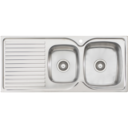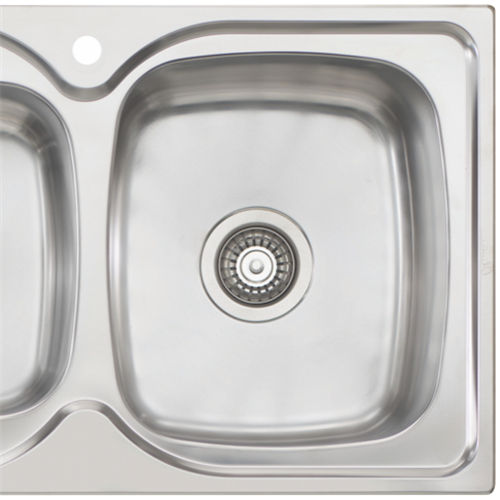 • 304 grade 18/10 polished stainless steel, 1 and 3/4 bowl with drainer, 17 Litre and 12 Litre capacity