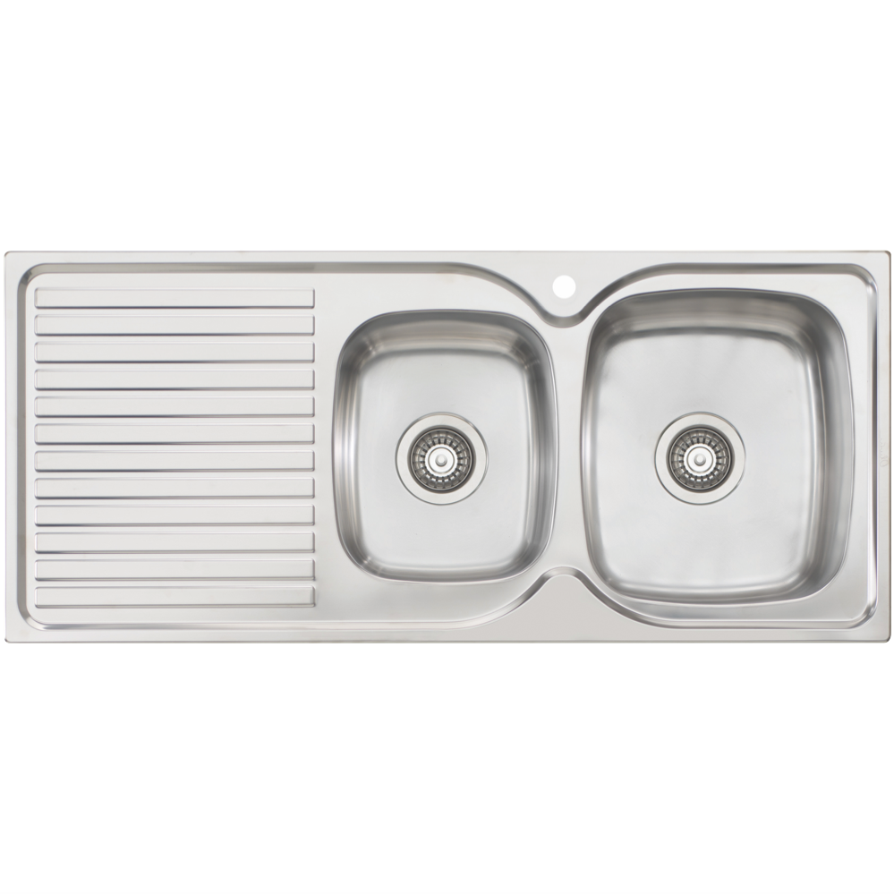 Step into a modern kitchen with the elegance and practicality of the Oliveri 1 + 3/4 Bowl Inset Sink With Drainer. This stainless steel sink delivers striking style and superb functionality to tackle cooking cleanups with ease. Featuring a durable polished 304 grade 18/10 stainless steel construction and measuring 1080mm wide by 480mm high the sink offers a spacious main bowl with a generous 17 litre capacity plus a handy 3/4 bowl with a 12 litre capacity for multi-tasking. The main bowl measures 330mm wide by 385mm high by 155mm deep while the smaller bowl measures 270mm wide by 330mm high by 155mm deep.Designed for topmount installation the sink includes a 1 tap hole option to suit your faucet needs. Basket wastes are also included for efficient drainage. With a sleek easy to clean stainless steel finish this Oliveri sink will be a stunning and practical addition to your kitchen.The manufacturer's part number for this product is EE12 1TH. Discover how this quality Oliveri sink can enhance your cooking and cleanup routine today.