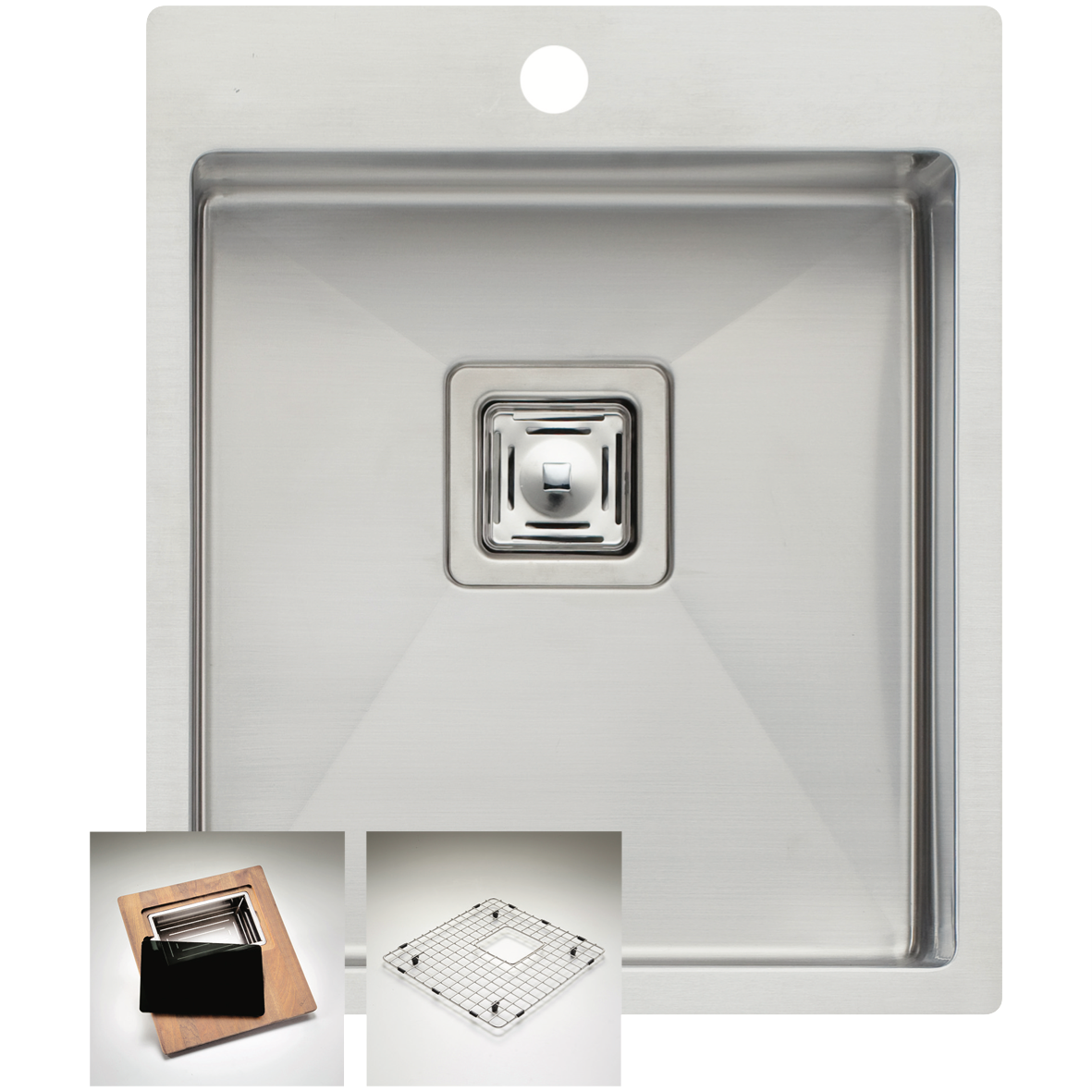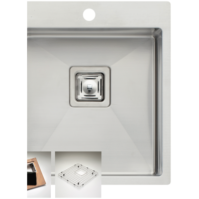 • 1 tap hole, drainer basket, chopping board, easy clean corners
