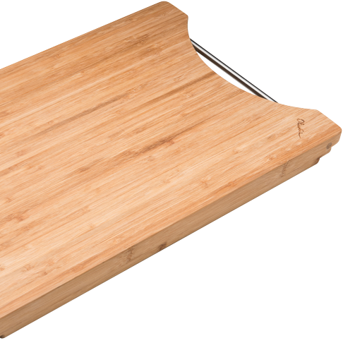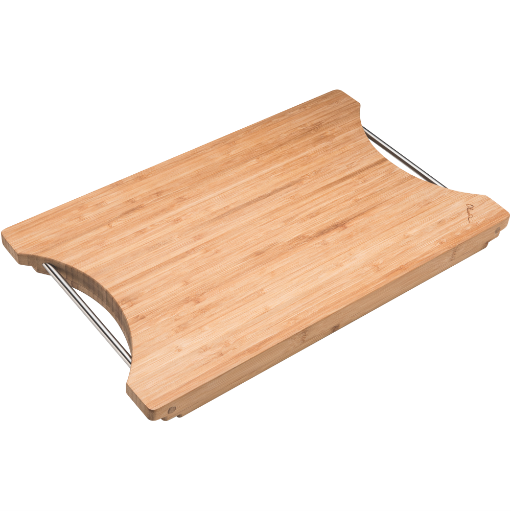 Enhance your kitchen prep with the Oliveri Santorini bamboo chopping board. This durable and eco-friendly board is perfect for all your slicing dicing and chopping needs. Crafted from rich bamboo the Santorini board adds a touch of natural style to your countertop while providing a sturdy and hygienic prep surface. Measuring a generous 450 x 280 x 30mm there's ample room for prepping ingredients for family meals or dinner parties. The sleek stainless steel handles allow for safe and easy transport from countertop to stove. Bamboo's naturally antibacterial properties minimize bacteria growth keeping your board hygienic for food prep. The Santorini chopping board makes a great addition to any home chef's kitchen arsenal. Pick up this quality Oliveri board to level up your meal prep game today. The manufacturer's part number for this product is ACP125.
