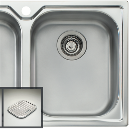 Bring sleek style and convenience to your kitchen with the Oliveri Diaz Double Bowl Inset Sink. Crafted from durable stainless steel this top mount sink features a modern double bowl design to streamline food preparation and cleanup. The generous 770mm width provides ample room for washing dishes rinsing produce and more while the 180mm depth adds workspace. With a total capacity of 21L across its two bowls this Oliveri sink accommodates pots pans and platters with ease. It comes equipped with one tap hole for installing your choice of faucet. Rear waste outlets maximize cabinet space underneath. This sink includes handy accessories like a petite tray round waste basket bamboo chopping board and colander to help you get the most out of its dual-bowl layout. Adjustable clips and sealing foam ensure a secure fit. Backed by Oliveri's lifetime warranty this double bowl sink provides exceptional durability you can rely on for years to come. Upgrade your kitchen with this high-quality inset sink. The manufacturer's part number for this product is DZ1631TH.