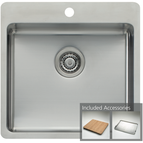Make a statement with this stylish Oliveri large single bowl sink that adds a modern touch to any kitchen. With a generous 520 mm width this spacious sink provides ample room for washing those oversized pots and pans with ease. The deep 205 mm bowl depth allows you to submerge stacks of dishes fully while the smooth rounded corners make cleaning a breeze. Durable and long-lasting this Oliveri sink is crafted from quality materials to withstand years of heavy usage. The optional accessories like the waste basket and preparation board maximize functionality and workspace. Give your kitchen a contemporary facelift with this versatile sink that handles all your washing needs while complementing your interior decor. Upgrade your home with this innovative sink solution today. The manufacturer's part number for this product is SN1051.