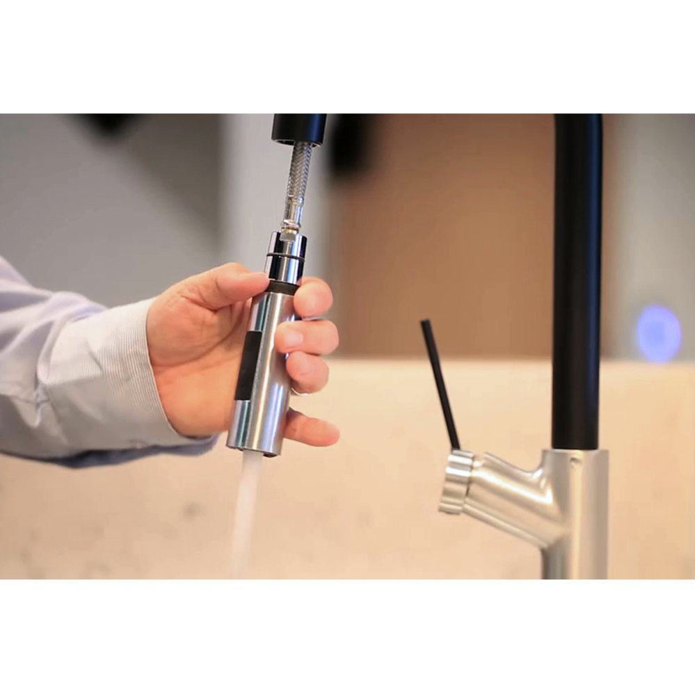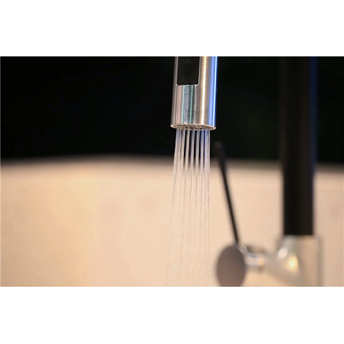• Gooseneck pull out spray mixer, ceramic disc cartridge