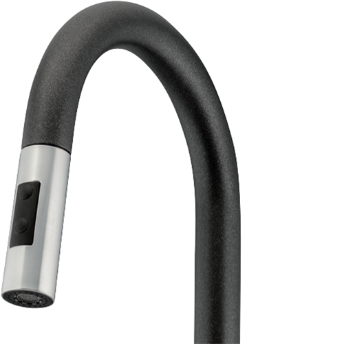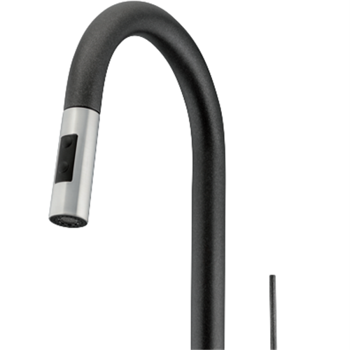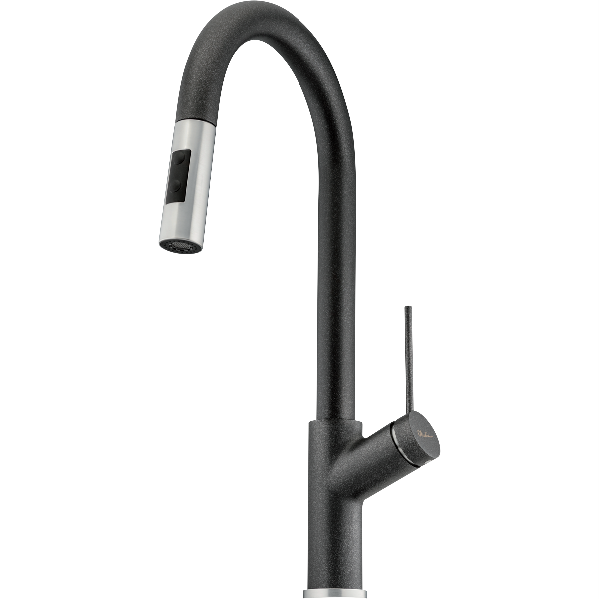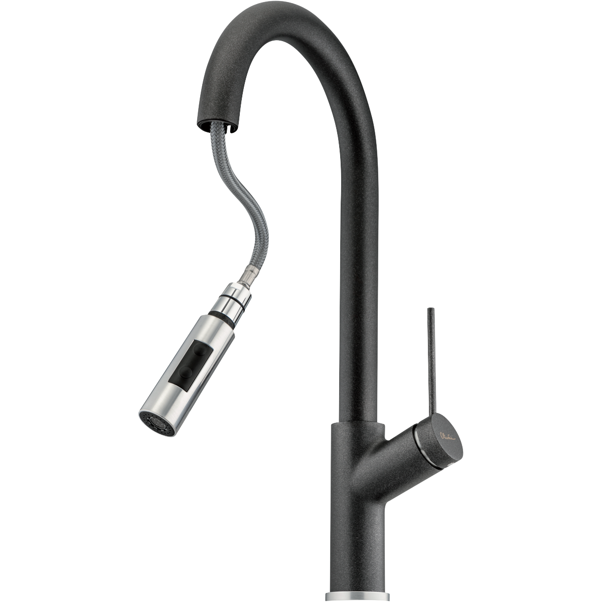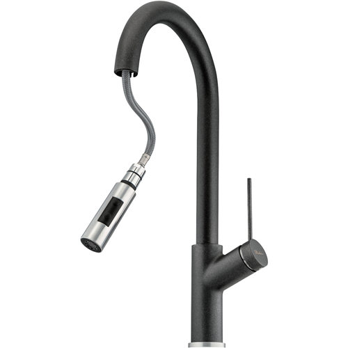 Add a touch of modern style to your kitchen with the Oliveri VT0426B-ST-BL SAN-BLACK Vilo POS Mixer. This sleek gooseneck pull out spray mixer is crafted from durable Santorini granite in a stylish matte black finish that will complement any décor. Featuring a 4 star WELS water rating for efficient water usage this mixer has a high flow setting and ceramic disc cartridge for smooth performance. With a 232mm spout height and robust 2.5kg weight it provides excellent reach and stability while the pull out spray head allows flexible rinsing. Made in Italy to the highest standards this mixer delivers exceptional quality and reliability. The manufacturer's part number for this product is VT0426B-ST-BL. Bring contemporary style and water saving efficiency to your kitchen with the Oliveri VT0426B-ST-BL SAN-BLACK Vilo POS Mixer today.