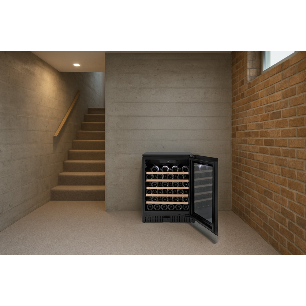 Discover refined wine storage with the Omega OCW52SB Single Zone Wine Cabinet a perfect blend of modern elegance and dependable performance. Designed to hold up to 52 bottles this sleek unit features a black powder-coated finish UV-protected triple-glazed door and precision temperature control from 4°C to 22°C. Whether used as a freestanding piece or built into your cabinetry it s the ideal solution for preserving your collection in style and comfort.