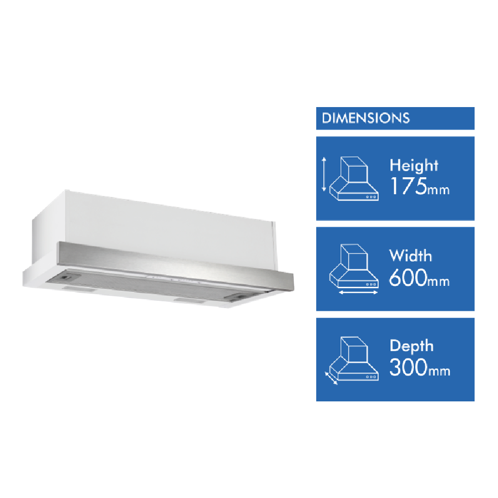 • 60cm slideout, ducted or recirculated, 2 LED lights