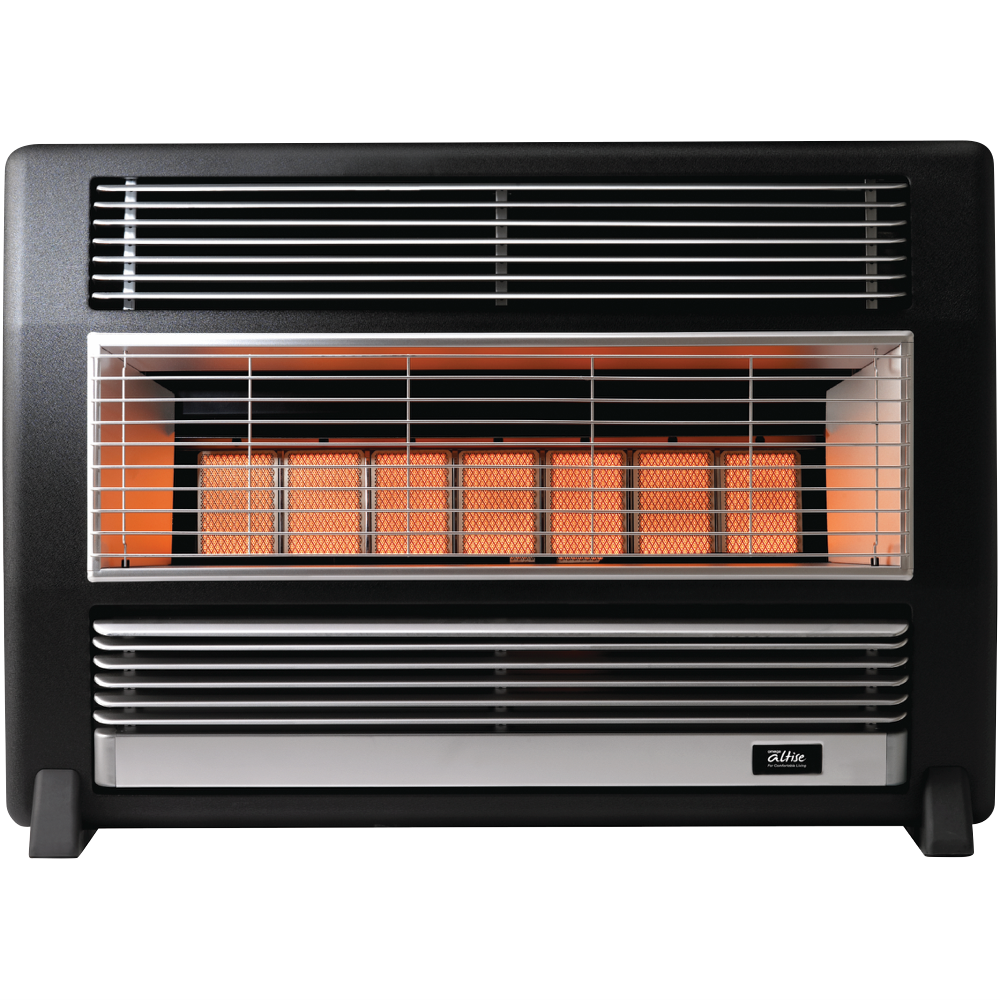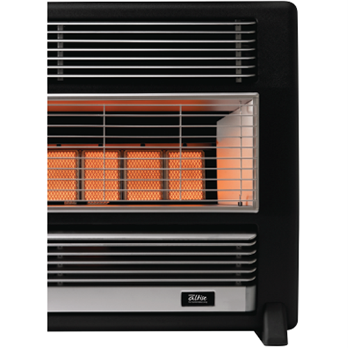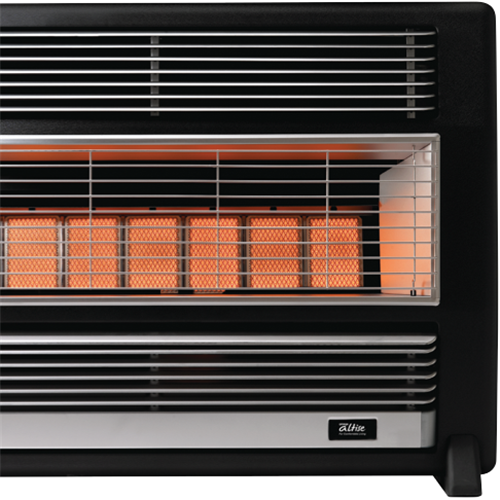 This Omega Altise gas heater has a portable design so you can ensure you're warm in any room. It's natural gas powered. Also the Omega Altise OABRFNGSS's 3 heat settings let you choose your own optimal setting. It has a 25 MJ/h gas input a 796mm width a 568mm height and a 285mm depth. You can choose what will look best in your home with the Omega Altise gas heater's black and silver finish. Also it has a tip-over switch so you can enjoy peace of mind without worrying about knocking over the unit. Heat without doing a lot of work with help from this Omega Altise gas heater.