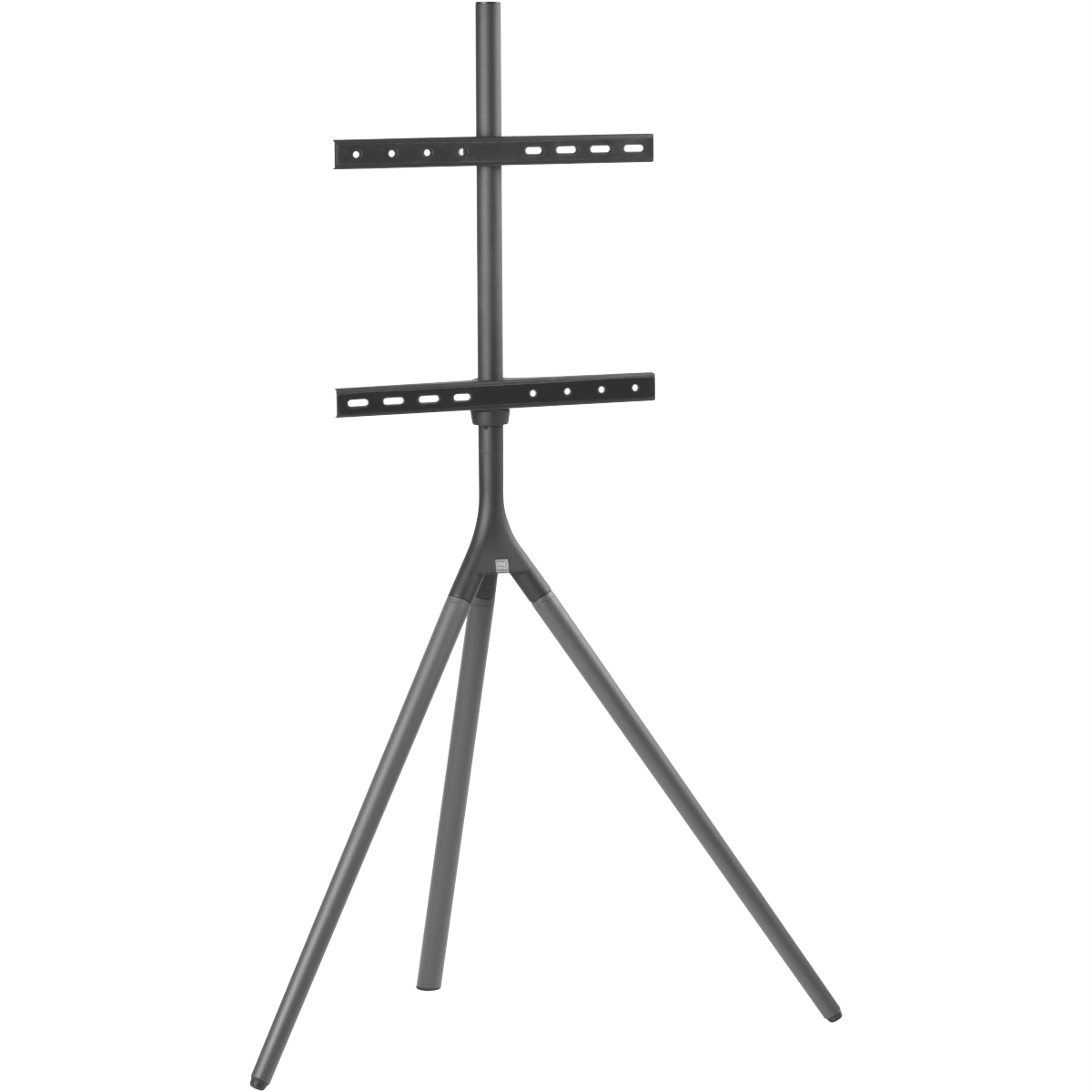 This One For All titanium grey designer tripod stand provides the ultimate stability and flexibility for TVs up to 65 inches. With its sturdy yet sleek design this floor stand securely holds your TV while complementing any living room decor. The tripod base and height adjustable pole create a stable foundation that prevents tipping while the universal VESA mounting pattern accommodates a wide range of flat panel TVs. Tilt swivel and rotate your TV up to 90 degrees for the perfect viewing angle. Convenient cable management clips keep wires organized and out of sight. Bring your entertainment experience to new heights with this versatile TV floor stand that holds TVs up to 30kg. With a lifetime warranty you can enjoy long-lasting performance. The manufacturer's part number for this product is UE-WM7461. Choose this tripod today for the ideal blend of form and function.