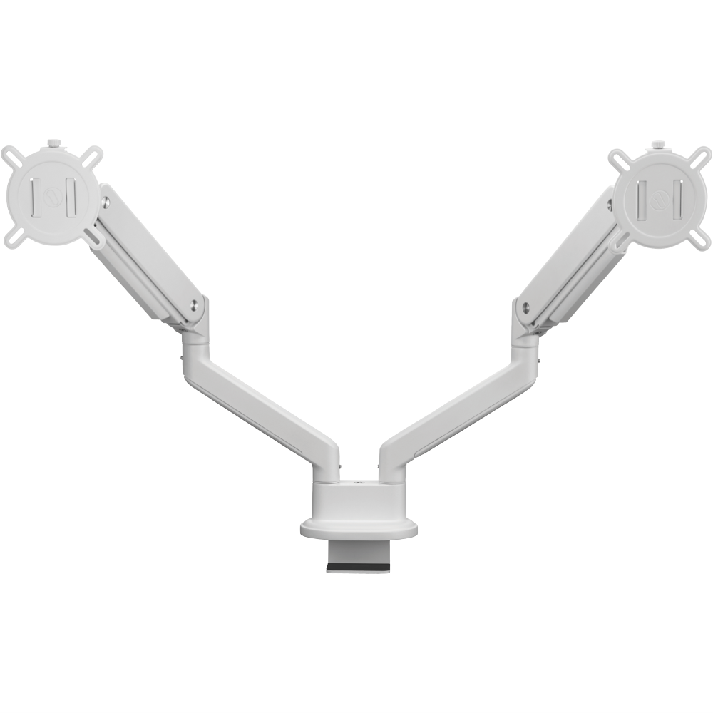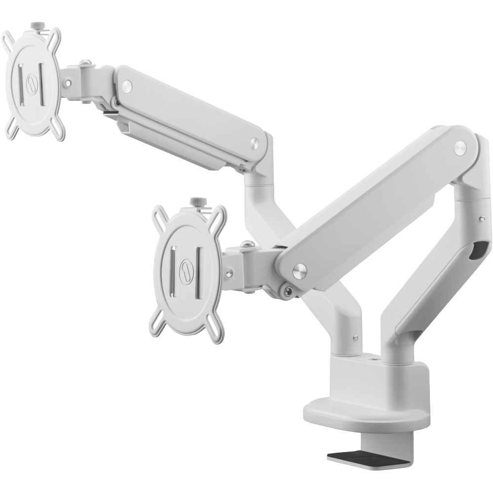 Need to mount dual monitors in your workspace? This white Dual Arm Solid Series Monitor Arm gives you the flexibility to position your screens exactly where you want them. The sturdy design holds your monitors securely while letting you adjust height tilt and rotation for the perfect viewing angle. You'll reduce desk clutter and create a more ergonomic setup that helps prevent neck strain during those long work sessions. Backed by a 10-year manufacturer's warranty this reliable monitor arm (model UE-DM4220) is built to last through years of daily adjustments.