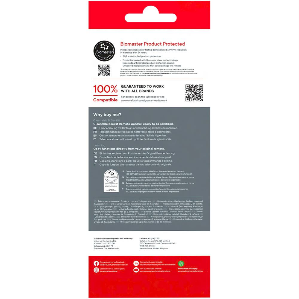 One For All Eazy Clean Universal TV Remote Control