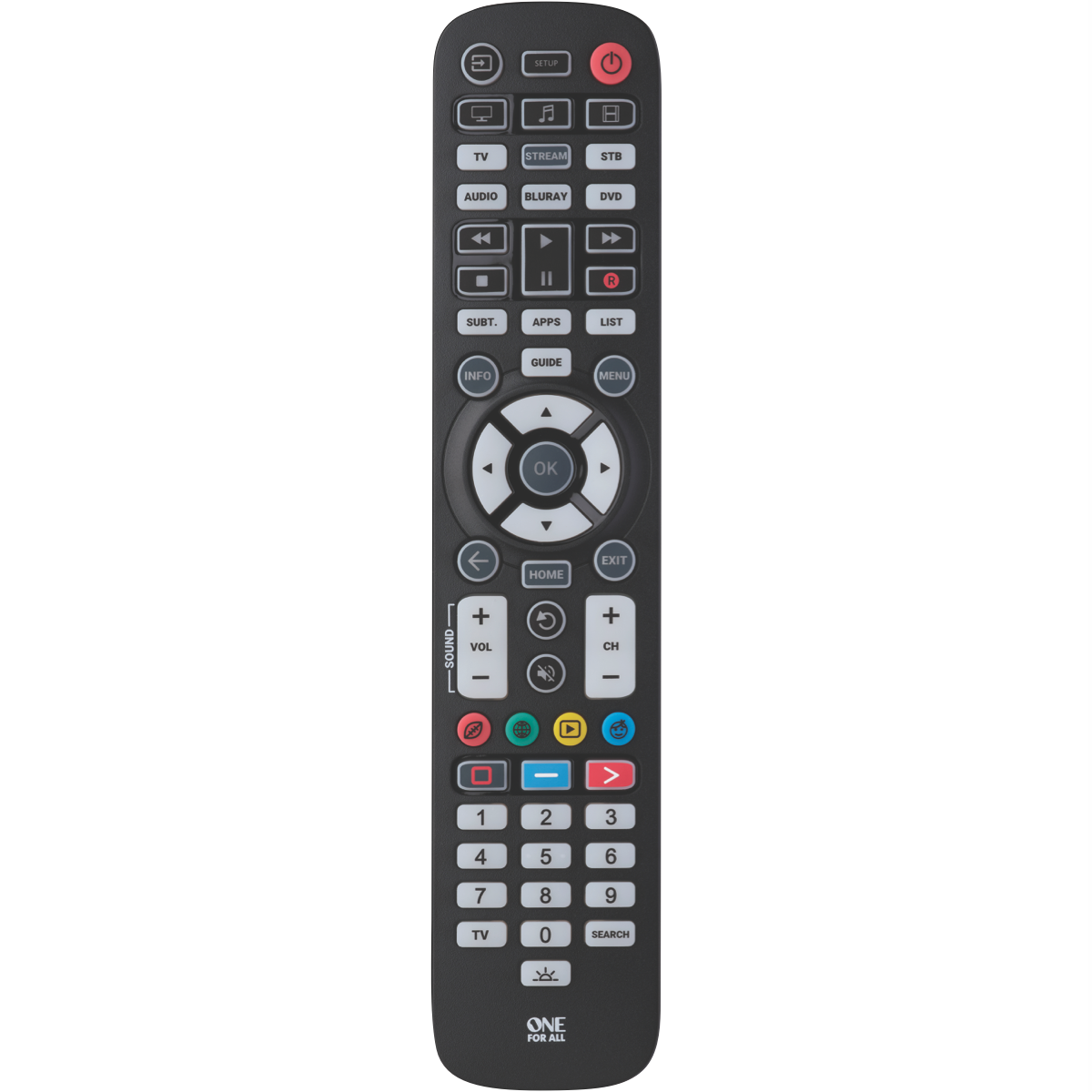 Introducing the One For All Essential 6 Antimicrobial Remote the hassle-free way to control all your devices. This innovative remote eliminates clutter with its ability to operate up to 6 devices including TVs DVD players sound systems and more. Its antimicrobial surface inhibits the growth of bacteria for improved hygiene. With well-spaced tactile buttons operating your devices is a breeze. The essential backlight illuminates in low light conditions so you can use it day or night. Setup is quick and easy with the included codes for thousands of devices. Stay in control of your home entertainment without juggling multiple remotes. This universal remote is compatible with over 5000 brands putting all your devices at your fingertips. Reduce clutter and simplify your life with the One For All Essential 6 Antimicrobial Remote.The manufacturer's part number for this product is URC3661. Discover the convenience of the One For All today.
