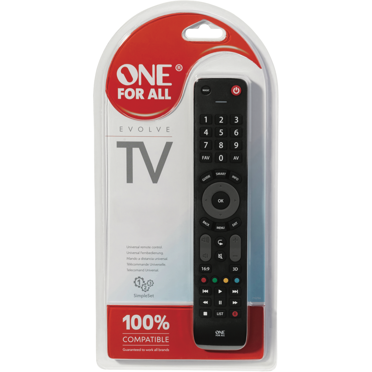 Control your TV viewing experience like never before with the One For All Evolve TV Remote Control. This versatile remote is designed for seamless compatibility with a wide range of TVs including LCD LED Plasma OLED and QLED models. Say goodbye to juggling multiple remotes and enjoy the convenience of operating your TV soundbar and other devices with just one slim ergonomic remote. With well-spaced rubberized buttons this remote rests comfortably in your hand. The minimalist button layout allows for intuitive control while reducing accidental button presses. Easily navigate through channels volume and menus on your compatible TV. The Evolve remote also features dedicated hotkeys for popular streaming platforms like Netflix Stan and YouTube so you can get to your favorite shows and movies with a single click. Setup is a breeze with auto-code search detecting the correct code for your TV brand. Or manually program your devices with advanced coding capabilities. With a 12 month warranty you can enjoy worry-free performance. The Evolve remote runs on included AAA batteries helping conserve battery life for extended use. Simplify your home entertainment center and enjoy one touch control with the One For All Evolve TV Remote Control. The manufacturer's part number for this product is UE-URC7115.
