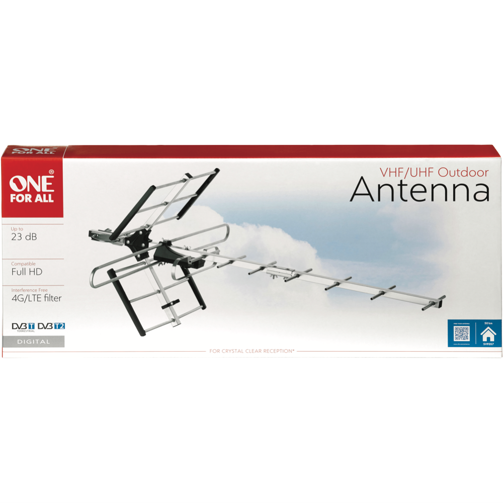 Designed to withstand heavy weather conditions. Easy to install Outdoor antenna capable of receiving all your favourite TV channels in Full HD (DVB-T/T2). For best performance we recommend to use this antenna within a range of 50 km from your nearest transmitter. Compatible with DVB-T/DVB-T2/Freeview programs broadcast in High Definition format (UHF). Minimal interference due to the active noise reduction filters including 3G/4G/5G/LTE filter for crystal clear reception. Simple 4 step assembly all elements already pre-mounted. Includes coaxial cable and connectors.