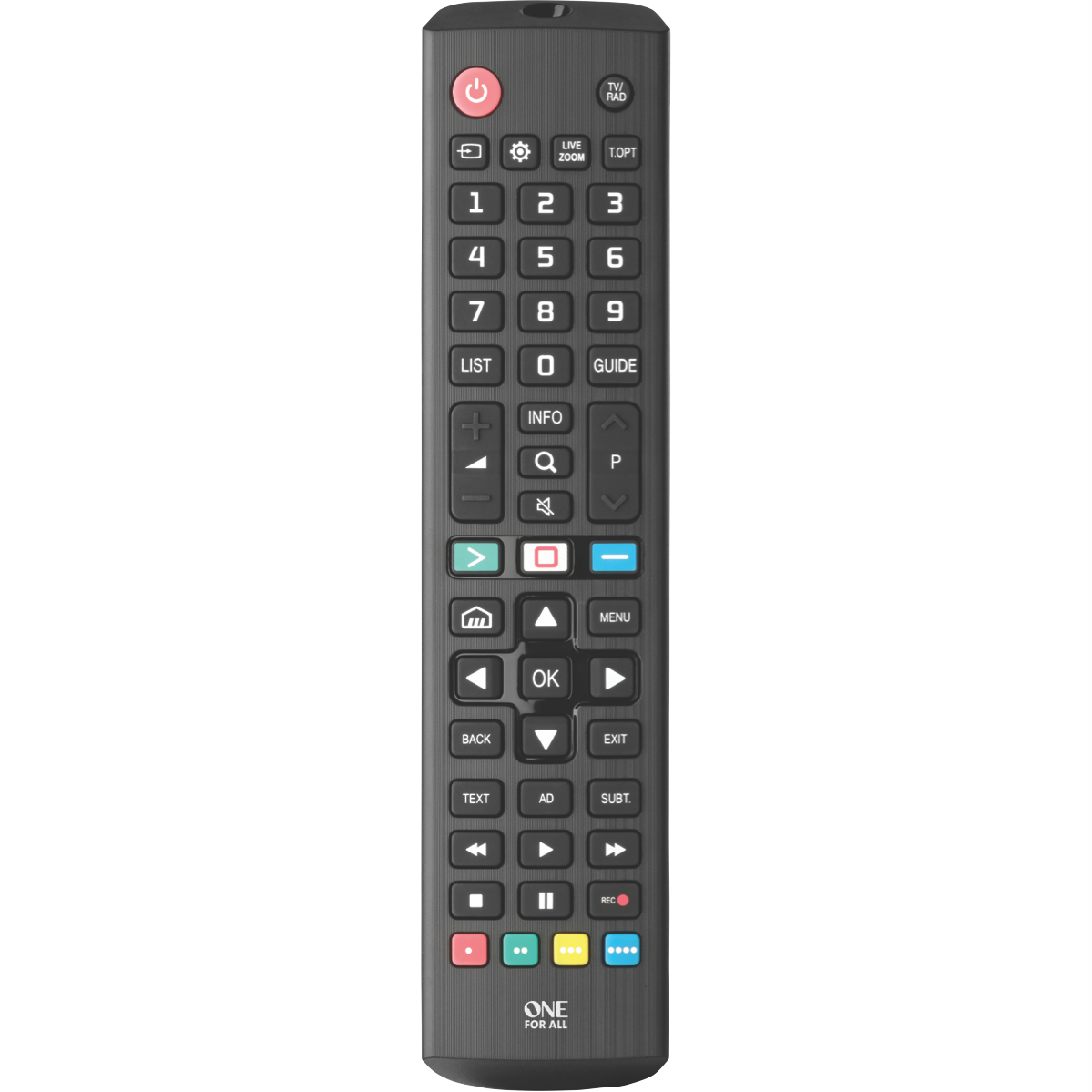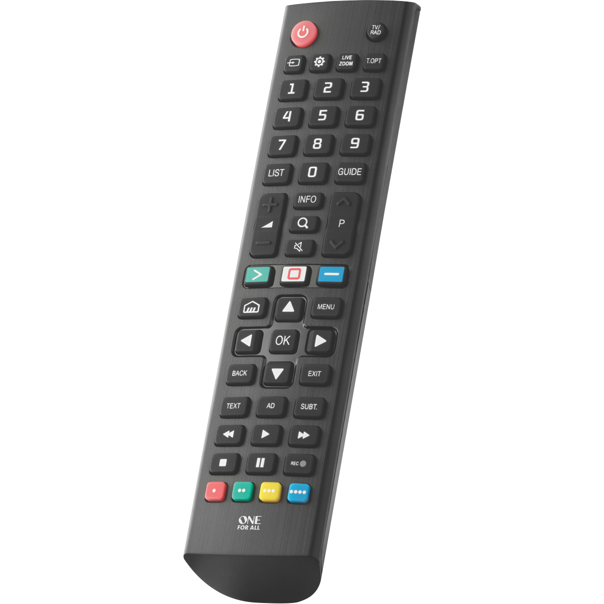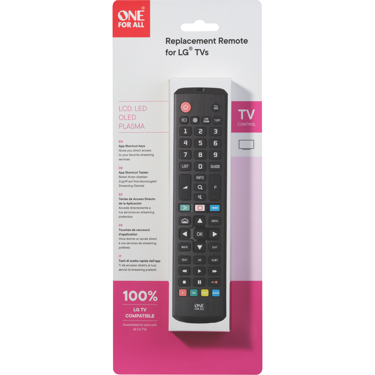 Tired of misplaced remote controls and fumbling with buttons? The One For All LG Replacement Remote offers a streamlined solution for your home entertainment. With compatibility for most LG TV models including LCD LED and Plasma this remote allows effortless control of your LG television's essential functions. By replacing your original remote you'll no longer deal with the hassle of juggling multiple remotes or hunting for lost controls. This replacement remote delivers the convenience of a simplified all-in-one remote tailored precisely for LG TVs. With easy-to-locate buttons for volume channel selection input switching and more you'll enjoy intuitive operation without the clutter of excess buttons. Setup is a breeze; simply insert the included batteries and start experiencing the convenience of this LG-customized remote. Designed for daily use the One For All remote also comes with a 1 year manufacturer's warranty giving you peace of mind. Make your life simpler; replace a lost or worn-out LG remote with the One For All streamlined replacement remote today. The manufacturer's part number for this product is UE-URC4911.