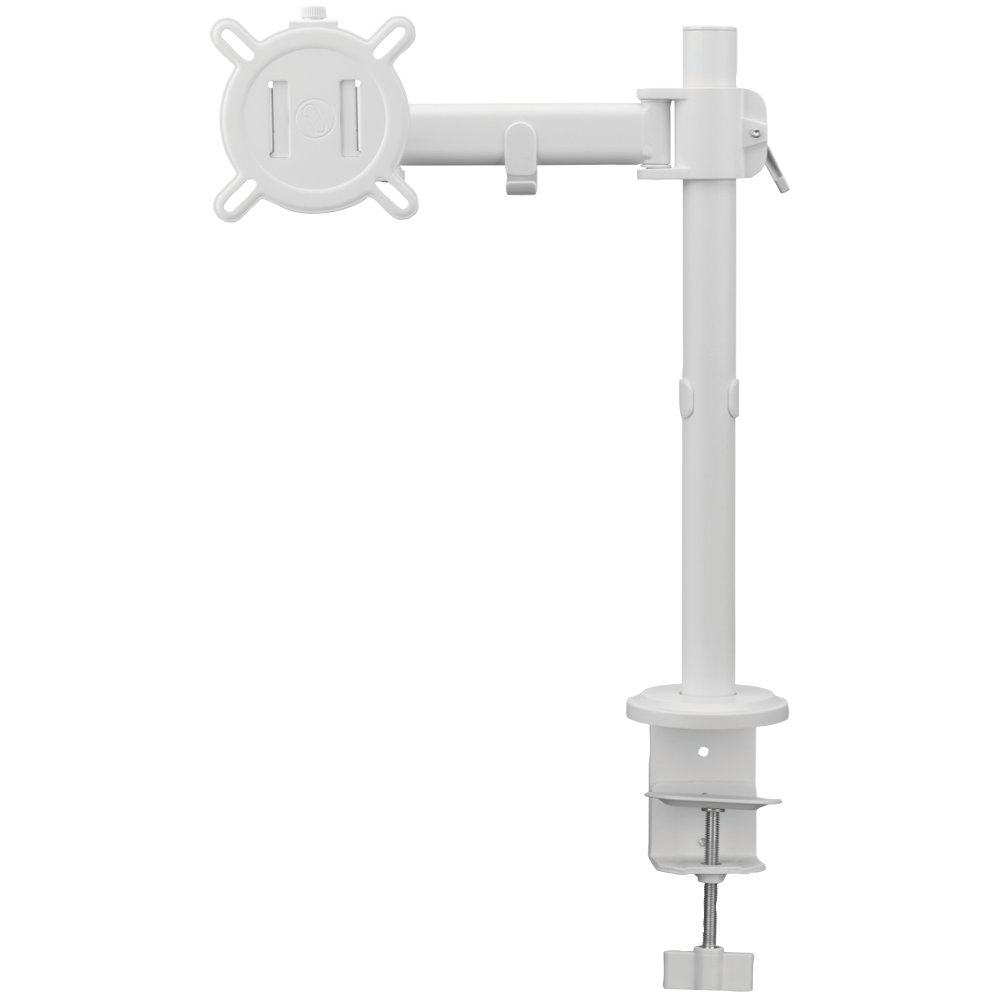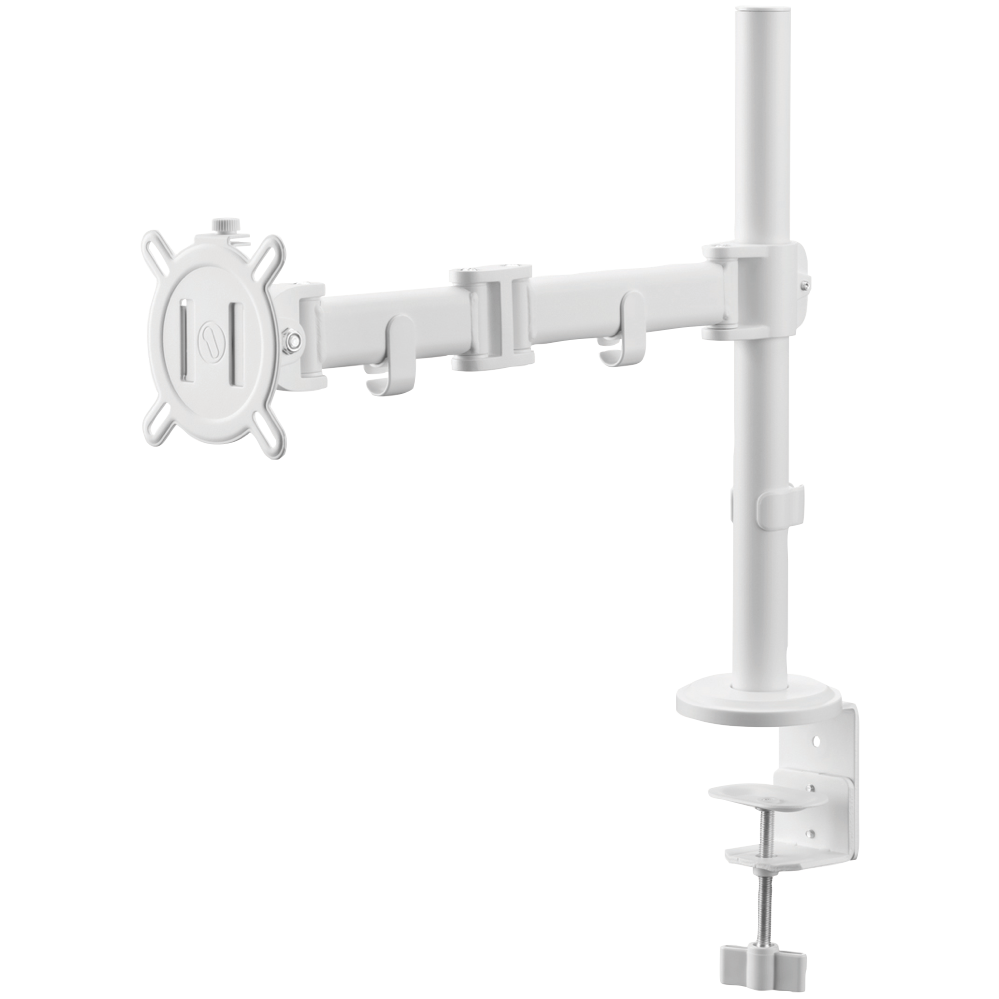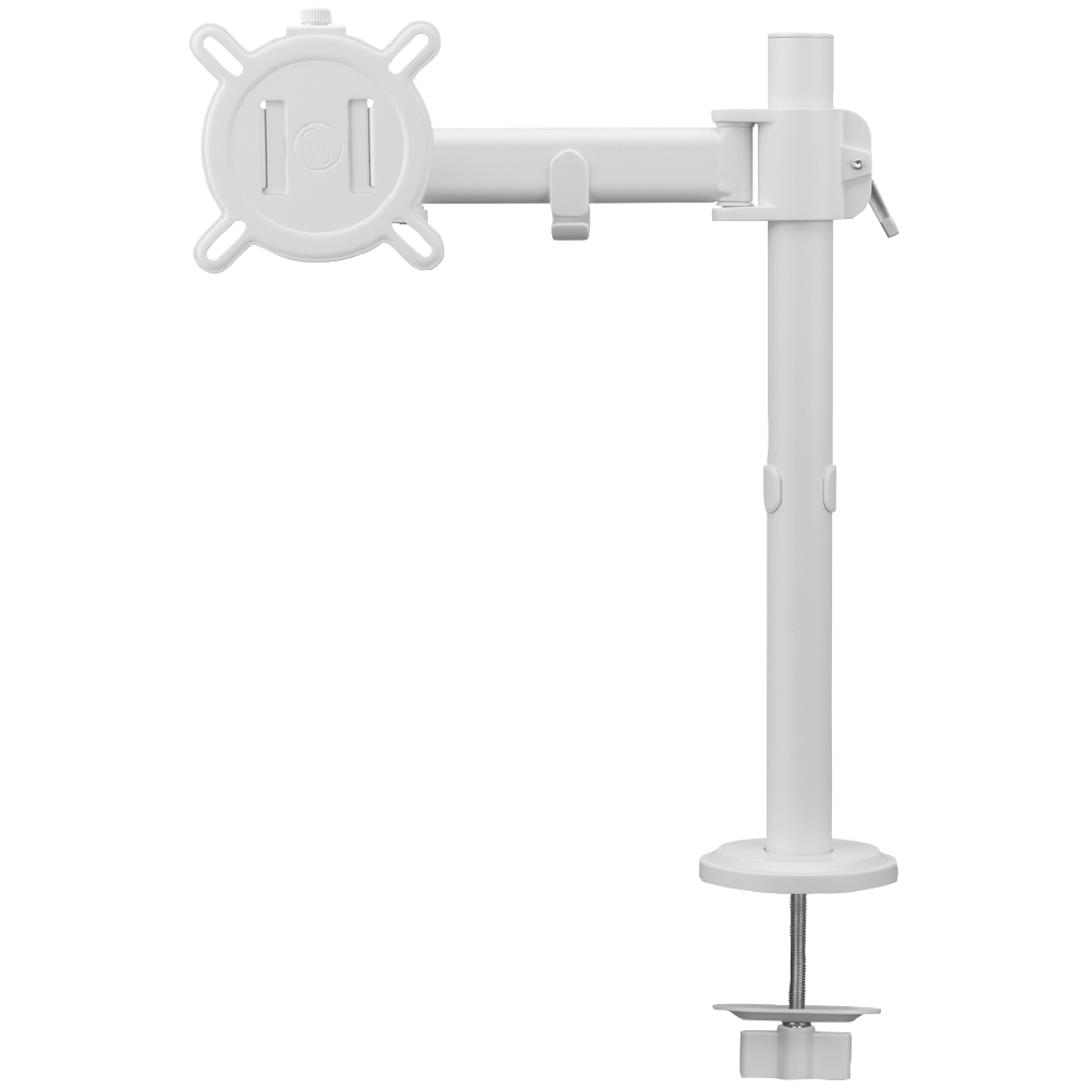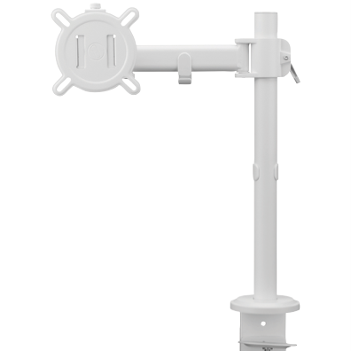 Upgrade your workspace with this sleek white Single Arm Smart Series Monitor Arm designed to fit most monitors between 13 and 32. The adjustable arm gives you complete control over your screen positioning helping reduce neck strain while creating a more organized desk setup. With its sturdy construction and clean design this monitor arm becomes an unobtrusive part of your workspace while providing the flexibility you need for comfortable viewing. Backed by a 10-year manufacturer's warranty you can count on long-lasting performance. Model UE-DM2120.