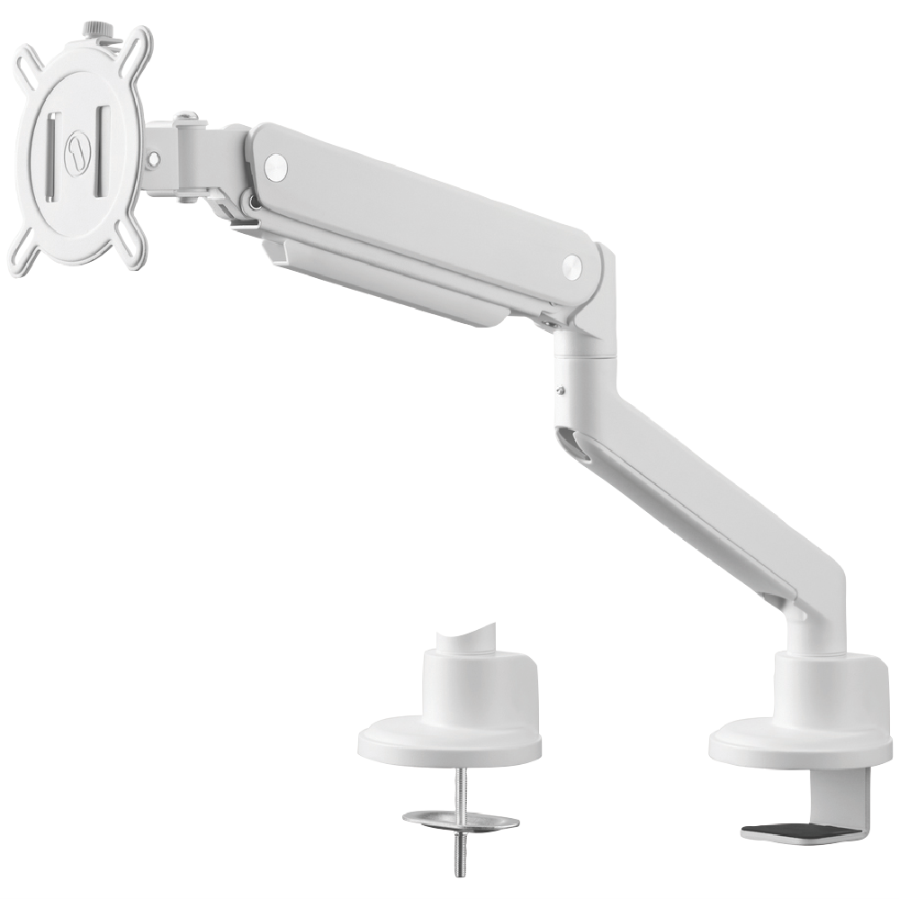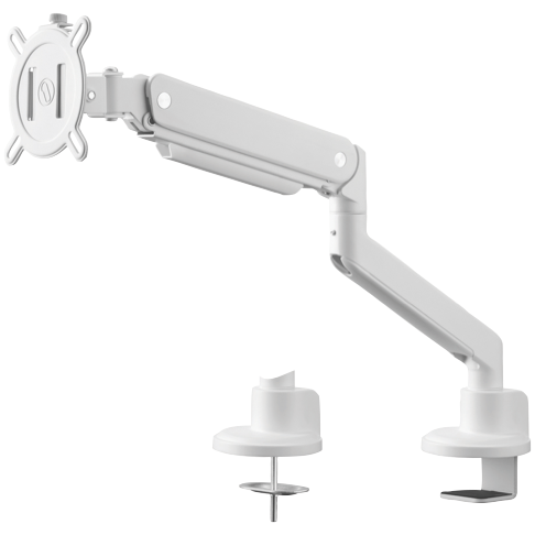 Elevate your monitor setup with this sleek Single Arm Solid Series Monitor Arm in white. It fits most monitors between 13 and 35 giving you the flexibility to position your screen exactly where you need it. With a 10-year warranty you can trust this monitor arm to support your display for years to come. Model UE-DM4120.