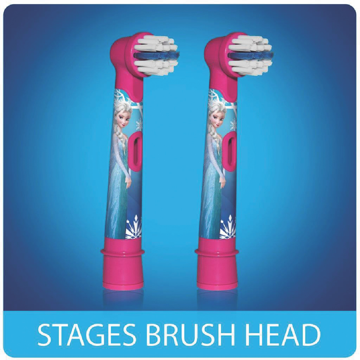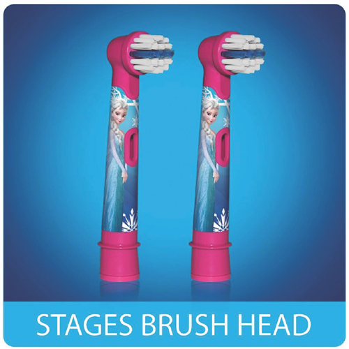 Bring Frozen magic and fun to your child's brushing routine with the Oral B Vitality Kids Stages Refill Frozen replacement brush heads. These soft gentle brush heads feature beloved Disney Frozen characters to make brushing a magical experience. The two included brush heads fit all Vitality electric toothbrushes providing a comfortable clean that's easy on young gums. With Oral B's stain removal technology the Frozen brush heads remove more plaque than a manual toothbrush for healthier teeth and gums. Give your child the gift of proper oral care with a toothbrush they'll look forward to using. Regular brush head replacements every 3 months ensure your child always has the most effective clean. The manufacturer's part number for this product is VITFRZNREFILL. Upgrade your child's oral hygiene today.