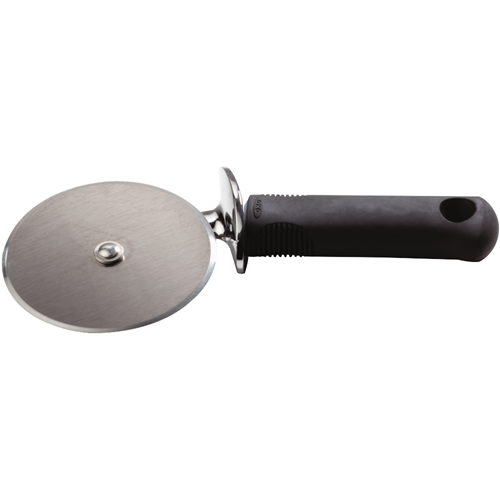 Slice and serve pizza with ease using the OXO Good Grips 4 Inch Pizza Wheel. This stainless steel kitchen tool features a soft non-slip grip that provides comfort while cutting through pizza crusts with minimal effort. The sharp circular blade glides smoothly to create clean cuts without tearing or ripping your pizza slices. The compact 4 inch size and ergonomic handle design allow you to maneuver the pizza cutter around plates and pans with control. Whether dividing up a large supreme pizza for the family or slicing individual pizzas for a party this pizza slicer wheel makes portioning simple. The stainless steel construction is durable for lasting use and the pizza cutter is conveniently dishwasher safe for fast cleanup. With its sharp cutting edge and comfortable grip the OXO Good Grips Pizza Wheel takes the hassle out of slicing pizza. The manufacturer's part number for this product is 48152. Check out this quality pizza cutter for easy pizza portioning.