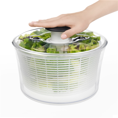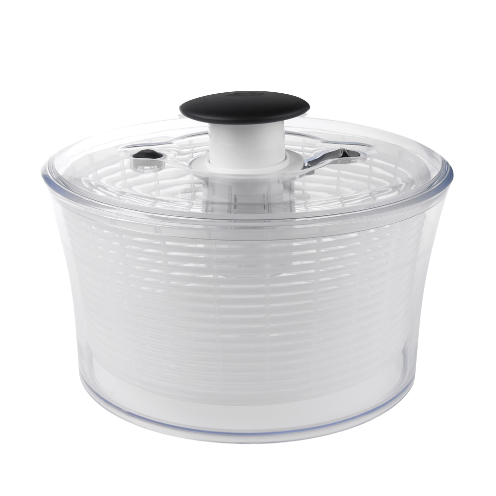 Easily dry lettuce and other leafy greens with the OXO Salad Spinner. This handy kitchen tool makes it simple to thoroughly dry salad greens and herbs after washing ensuring your salads are crisp and fresh. The non-slip grip and base keep the spinner steady while in use and the built-in brake button allows you to stop the spinning with one hand. The BPA-free plastic construction is durable and dishwasher safe for easy cleaning. Spin your way to perfect salads and garnishes with this innovative spinner. With its non-slip features and easy one-handed operation this spinner takes the hassle out of drying greens. Discover the difference truly dry greens can make in your next salad or slaw. The manufacturer's part number for this product is 48102. Check out this salad spinner for fresher crisper salads and herbs.