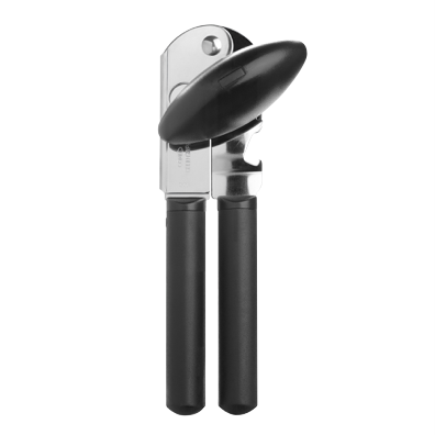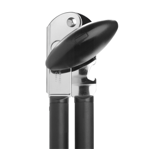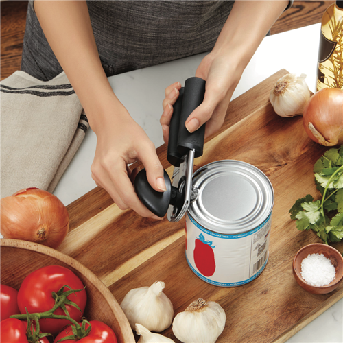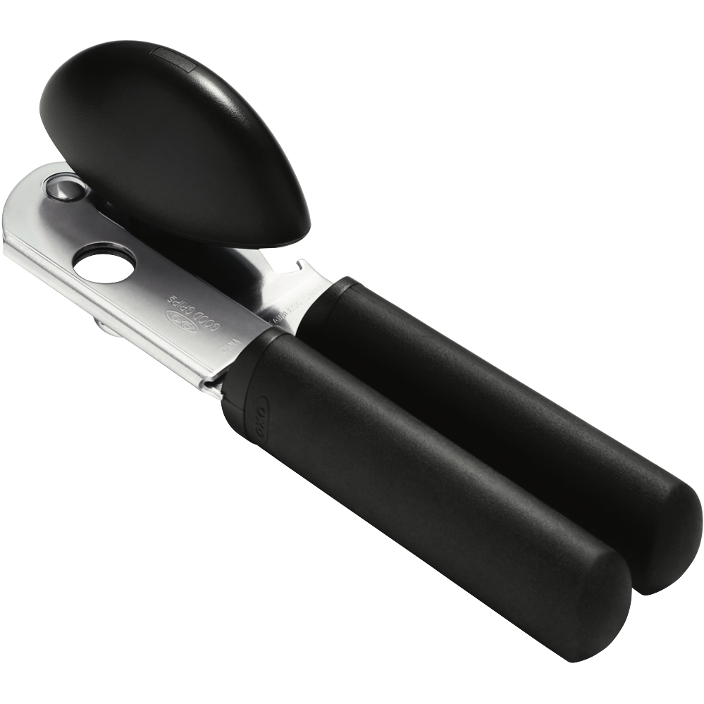 Crafted with comfort in mind the OXO Good Grips Soft Handled Can Opener makes opening cans effortless. The soft non-slip grip cushions hands during use while the stainless steel cutting wheel powers through can lids with ease. Built to last with a limited lifetime warranty this sturdy can opener simplifies meal prep with its smooth turning knob and handy built-in bottle opener. The innovative design even catches lids so they don't fall into food. With its black and stainless steel finish the OXO can opener adds function and style to any kitchen. The manufacturer's part number for this product is 48202. Bring home the OXO Soft Handled Can Opener for easy everyday use.