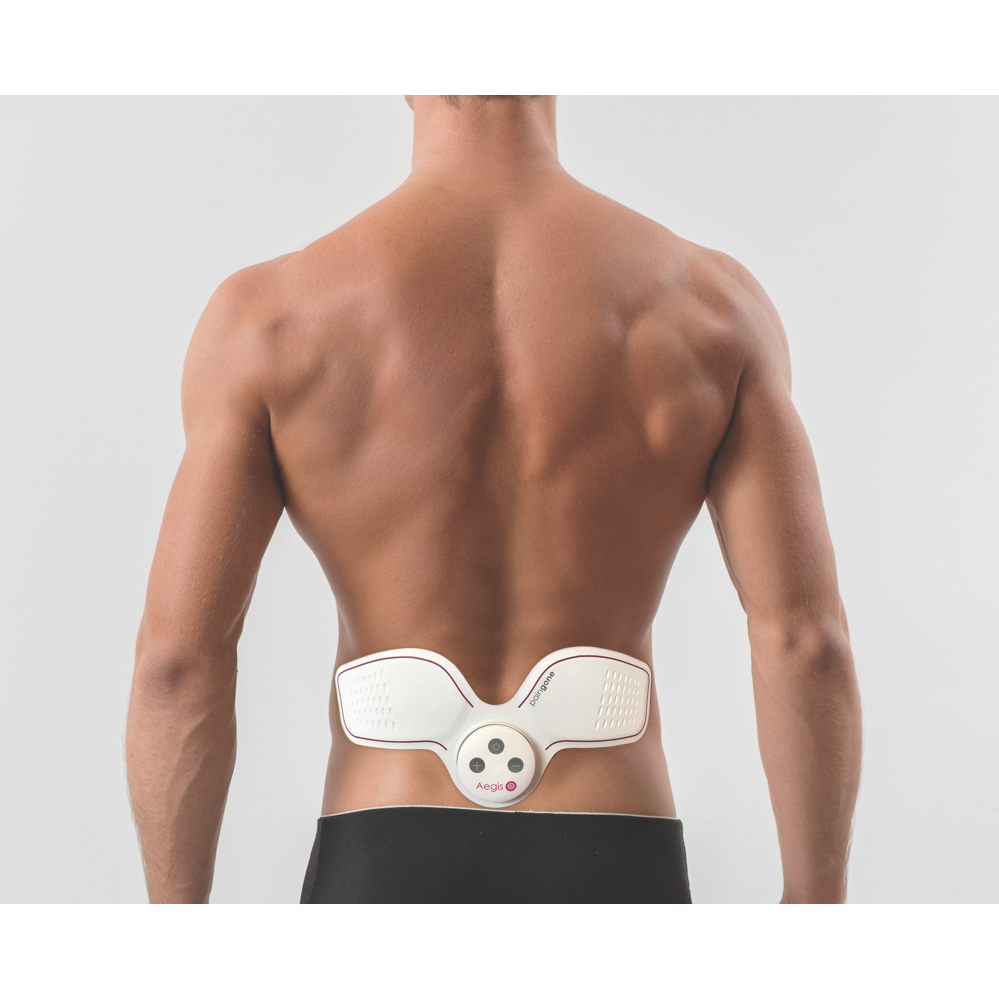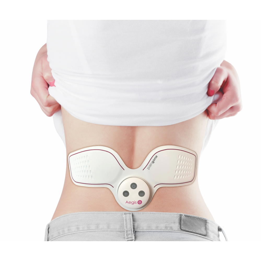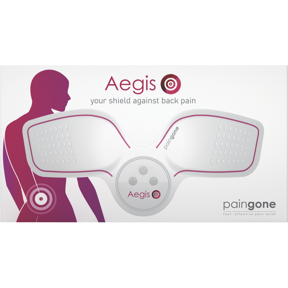 The Paingone Aegis Back Pain Relief Device PGAEGIS is powerful wireless and USB chargable including the remote control. It is designed to be worn directly on the lower back to relieve chronic back pain and attaches via sticky gel pads to deliver 16 levels of relief inducing intensity via powerful TENS therapy that blocks and relieves pain at the sources. Get comfortable with six single pulse patterns and nine combination pulse patterns built in. Those looking for immediate relief to all types of back pain or want a treatment that can be worn all day only activated when needed the most should be very interested in the Aegis. The Aegis is designed specifically for use on the lower back and offers a more powerful therapy that is suited to the lower back specifically and is much larger than the Paingone Easy.