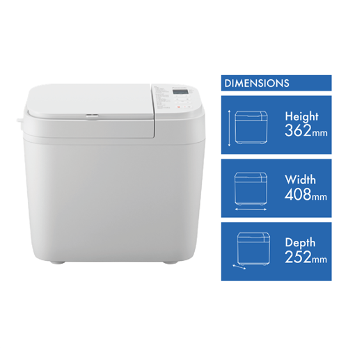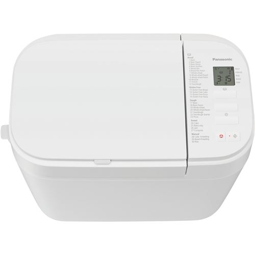 Discover the joy of baking fresh artisan breads at home with the Panasonic Bread Maker. This versatile white bread machine features 30 auto programs including gluten-free options and manual settings giving you the creativity to craft specialty loaves like brioche and sourdough. With dual temperature sensors and a 13 hour digital timer perfection is guaranteed. Choose from four crust colors and four loaf sizes including extra large. The automatic raisin and nut dispenser evenly distributes mix-ins throughout your dough. The aluminium body with non-stick fluorine coating makes baking and cleanup easy. Create custom bread mixes with the touch of a button. This bread maker's 30 auto programs manual settings and specialty cycles allow anyone to make professional-quality breads cakes and doughs with ease. Visualize waking up to the aroma of freshly baked bread every morning! With a 1 year manufacturer's warranty this bread machine delivers reliable performance you can trust. The manufacturer's part number for this product is SD-R2530WST. Discover the possibilities with the Panasonic Bread Maker today!