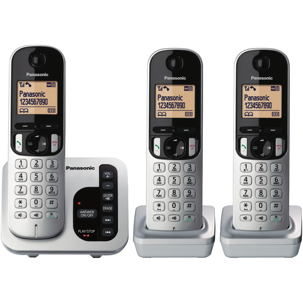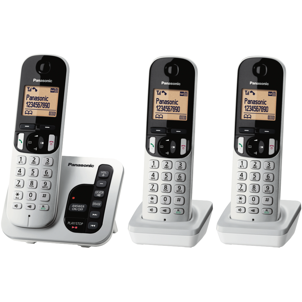 Step into a world of convenience and flexibility with the Panasonic Cordless 223 Phone Triple Pack. Stay connected on the go with these cordless phones featuring up to 16 hours of talk time and 200 hours of standby time on a single charge. The large easy-to-read display makes dialing effortless while 50 phonebook entries ensure your favourite contacts are only a tap away. Block unwanted callers with the 30 number call block and enjoy hands-free conversations thanks to the integrated speakerphone. With three stylish and lightweight handsets you can easily place one in every room of your home. Polyphonic ringtones and caller ID help you identify who's calling before you pick up. Bring home the freedom of cordless with the Panasonic triple pack and enjoy fuss-free phone calls wherever you roam. The manufacturer's part number for this product is KX-TGC223ALS. Choose the Panasonic Cordless 223 Phone Triple Pack for convenient communication across every room.