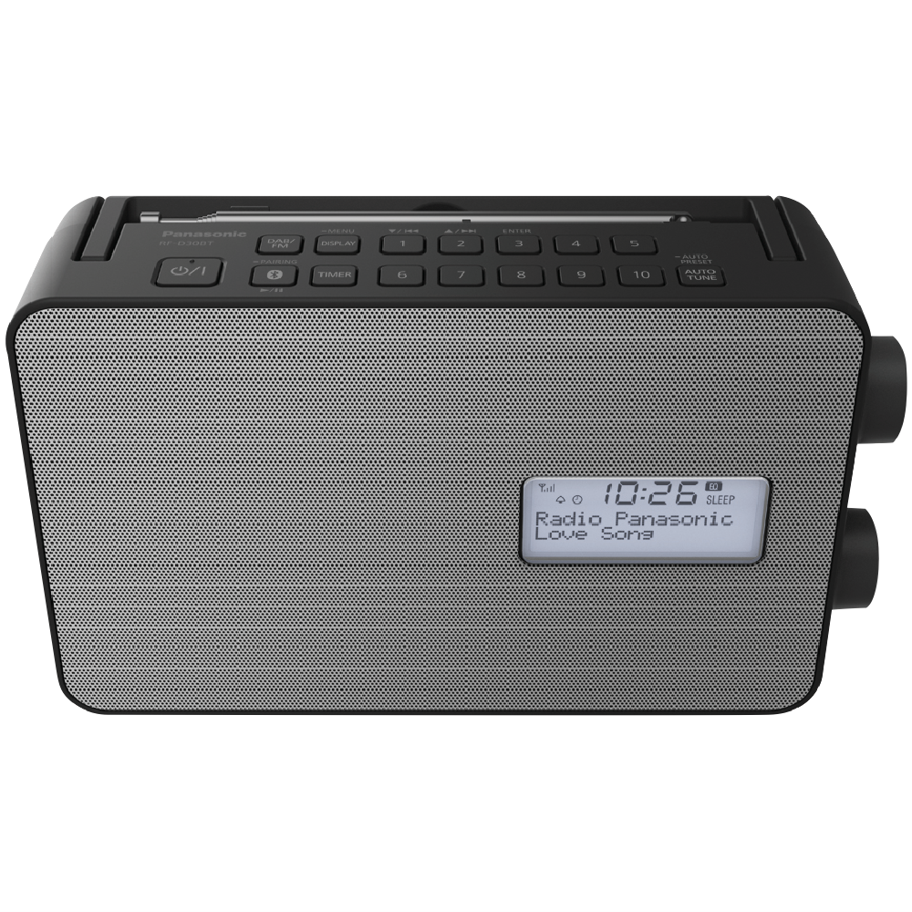Escape the daily grind with the Panasonic DAB+ FM & Bluetooth Portable Radio. This compact digital radio delivers clear room-filling sound from its 10cm full-range speaker. With DAB+ digital and FM radio bands you'll always find a station to suit your mood. Connect via Bluetooth to stream music wirelessly from your smartphone or tablet. With 10 preset stations and a backlit LCD display listening is easy and enjoyable. The built-in alarm timer lets you wake up to your favorite station or tone. Powered by 4x C batteries for up to 20 hours of portable listening. Weighing just 1.3kg the Panasonic DAB+ FM radio is the perfect companion at home in the office or on weekends away. Enjoy reliable reception and bold balanced audio wherever you go. The manufacturer's part number for this product is RF-D30BTGN-K. Bring your favorite stations with you on the go with the Panasonic Portable DAB+ FM Radio today.