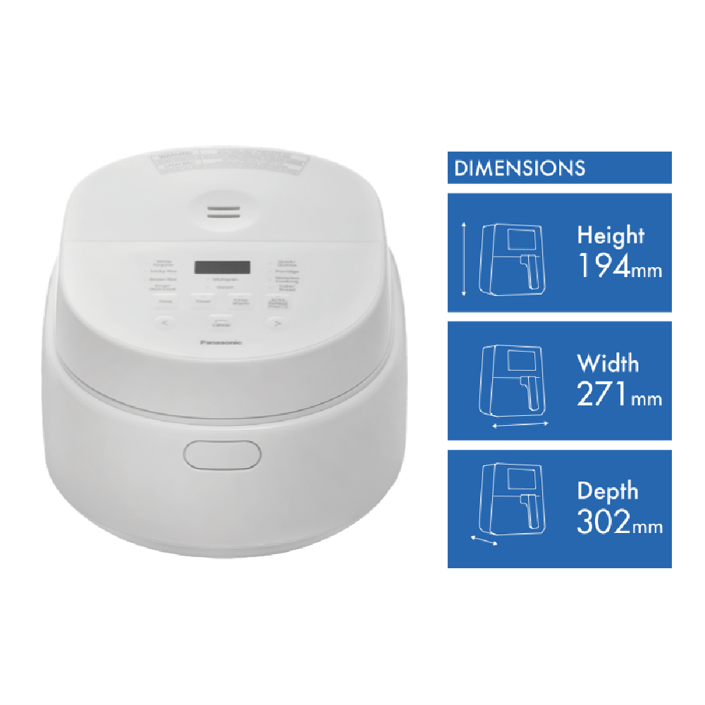 Cook perfect rice and a variety of dishes with this 2.75L Panasonic Multi Cooker. Its 810W triple heating elements ensure even cooking while the touch controls make selecting from 10 programs simple whether you're making white rice quinoa porridge or even cake. The convenient 24-hour preset timer lets you prepare meals in advance so dinner's ready when you are. The binchotan coated non-stick inner pot makes cleanup easy and the included measuring cup rice scoop and steam basket are all dishwasher safe. Comes with a 1-year warranty. Model SR-DL104WST.