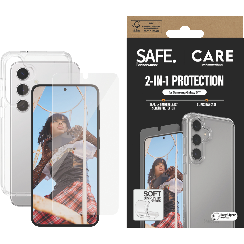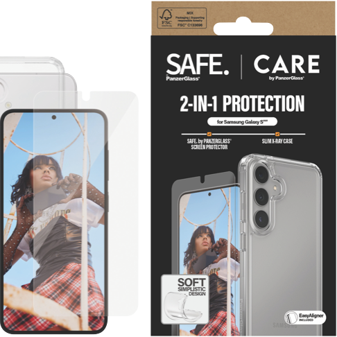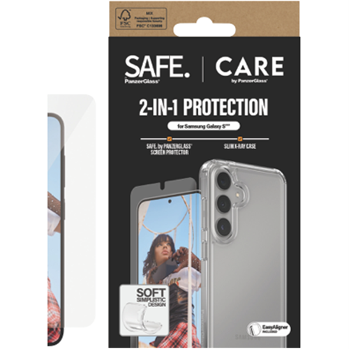 Protect your Samsung Galaxy S25 with this handy 2-in-1 bundle from Panzer Glass CARE. You get a clear case and screen protector that work together to keep your phone safe from bumps and scratches. The case is slim but tough while the screen protector helps prevent cracks and chips on your display. It's easy to put on and doesn't get in the way of using your phone. This bundle fits the S25 perfectly and comes with a 1-year warranty for peace of mind. Part number: CRRCANUG38388.