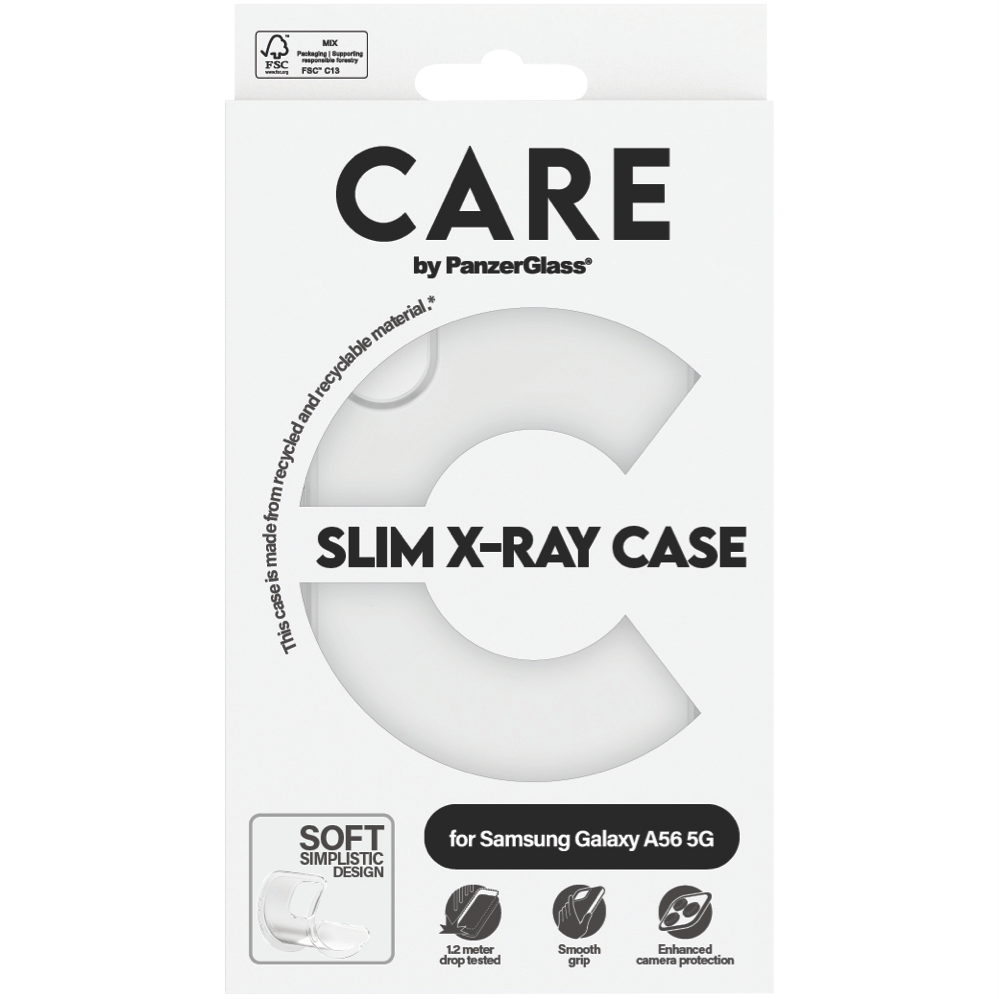 A clear choice for protection and style. Let your phone s true color shine through. With a soft slim design this protective case is durable inside and out. And with its smooth grip it looks as good as it feels. Drop-tested at 1.2 meters this case is designed to endure everyday falls and scratches. The X-Ray case made from recycled plastic is designed for wireless charging and enhanced camera protection. DARE TO CARE. CARE is a playful and protective international tech and lifestyle brand featuring a range of products created with the highest quality materials and influenced by fashion art and music. We care about people and the world we live in. We care about sustainability and self-expression. And we care about tech and extending its lifetime. So protect your tech in style and show the world you CARE.