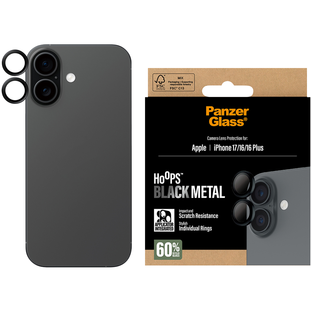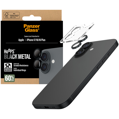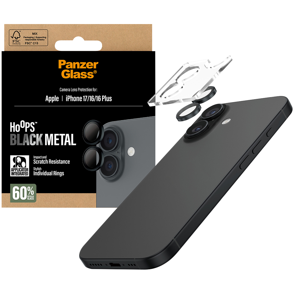 Protect your iPhone 17's camera lenses with the sleek Hoops Black Camera Lens Protector. This precision-designed shield safeguards your valuable camera system while maintaining perfect photo quality. The included easy install applicator makes application simple and bubble-free so you'll be up and running in seconds. At just 25 grams you won't even notice it's there yet your lenses remain fully protected from scratches and impacts. Comes with a 1-year manufacturer's warranty. Model PG55024.