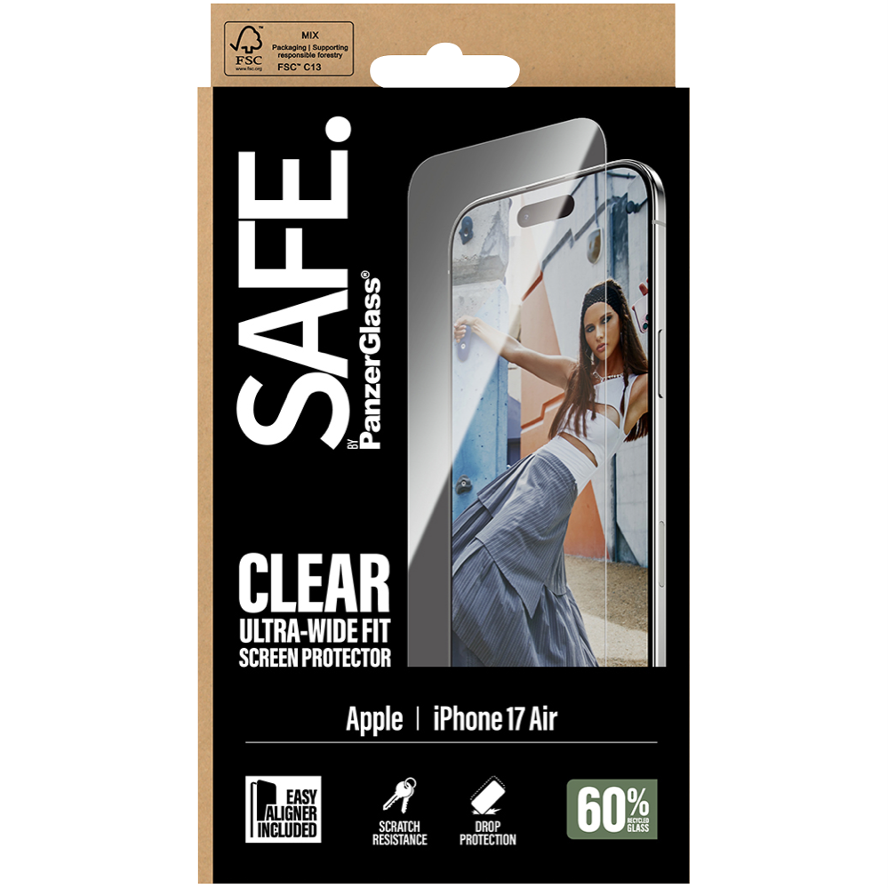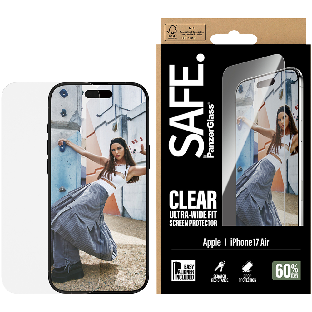 Keep your iPhone 17 Air screen pristine with this Ultra-Wide Fit Screen Protector that covers your entire display. The included EasyAligner makes installation a breeze helping you position it perfectly the first time. For extra convenience a cleaning kit is included so you can prep your screen for bubble-free application. The clear protector preserves your phone's original look while providing essential protection against scratches and smudges. Comes with a 1-year manufacturer's warranty. SA92447.