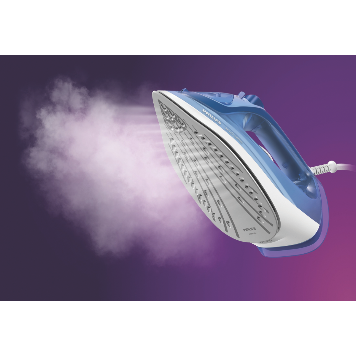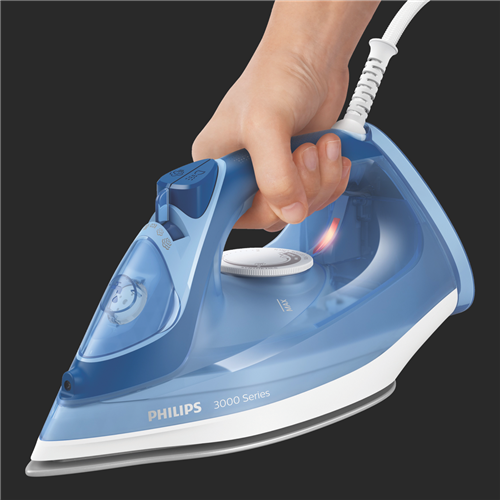 An ironing essential for busy Aussie households the Philips 3000 Series Steam Iron in classic blue brings effortless ironing and powerful crease removal to your laundry days. Equipped with a durable ceramic soleplate and 2400-watt power this iron delivers a continuous 40g/min steam output and 180g/min steam boost to glide through stubborn wrinkles with ease. The 300ml water tank allows longer ironing sessions between refills while the 2-minute heat up enables you to start ironing faster. The built-in calc-clean slider removes scale buildup ensuring optimal steam performance every time. With its vertical steam function triple precision tip and tap water suitability this iron tackles even the toughest creases on curtains collars and other garments. Weighing only 1.2kg the Philips 3000 Series Steam Iron offers lightweight manoeuvrability and an anti-drip system for mess-free ironing. Enjoy ironing with confidence thanks to the automatic shut-off and 35-second quick heat up. Complete with a 2-year warranty this quality steam iron will be your go-to for tangle-free shirts crisp trousers and perfectly pressed linens for years to come. The manufacturer's part number for this product is DST3031/29. Give your laundry an upgrade with the Philips 3000 Series Steam Iron today.