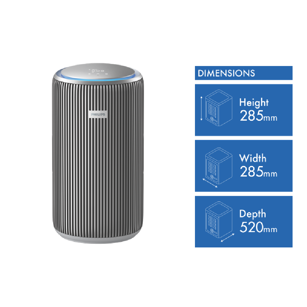 Breathe easier with the Philips 4200i Series Air Purifier in Supernova Silver. This smart purifier uses a 4-layer HEPA filtration system that traps 99.97% of the smallest particles including viruses like H1N1 flu. It's powerful enough to clean rooms up to 156m while using just 54W of power. Choose between Sleep mode for quiet nighttime operation Turbo mode for quick air cleaning or let the Automatic setting handle everything. Connect via Wi-Fi to control your air quality from anywhere. Measuring 285mm wide 285mm deep and 520mm high this 6.5kg purifier fits easily into most spaces and comes with a 2 year warranty. Model AC4220/12.