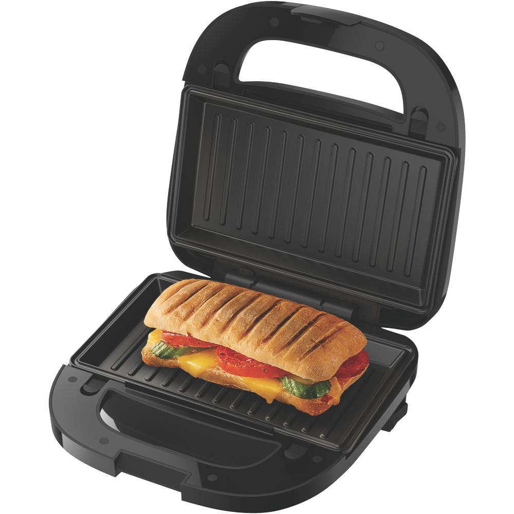 Additional Features Even heating for perfect melting and toasting, Built-in cord storage, Easy lock system snaps shut for a tight seal, Cut and seal plates keeps fillings inside, Non-slip feet, Vertical %26amp; cord storage