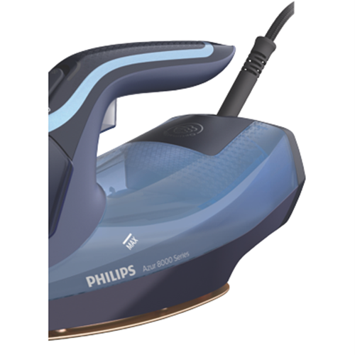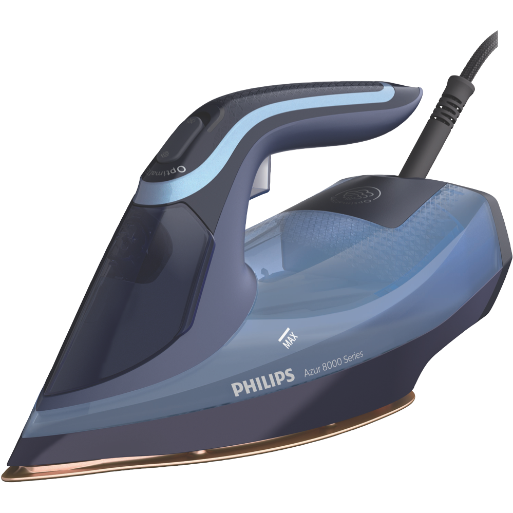 Elevate your ironing experience with the Philips 8000 Series Steam Iron in stylish light blue. This powerful 2400W steam iron makes quick work of wrinkles thanks to an array of advanced features. The innovative SteamGlide Elite soleplate with pointed tip glides smoothly over any fabric. OptimalTEMP technology maintains the perfect temperature while an anti-drip system prevents leaks. Steam output of 45 grams per minute combined with a steam shot of 210g grams tackles even the toughest creases. With a large 300ml tank vertical steaming and 2.5m cord length this iron lets you refresh curtains dresses and more with ease. Auto shutoff provides safety and peace of mind. Backed by Philips' 2 year warranty this lightweight 1.78kg iron with integrated plug is your partner for faster easier ironing sessions.