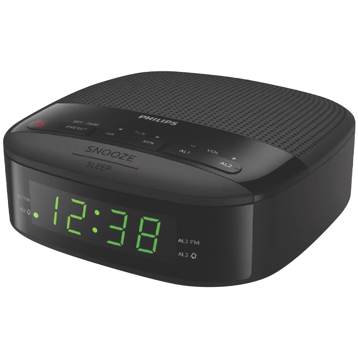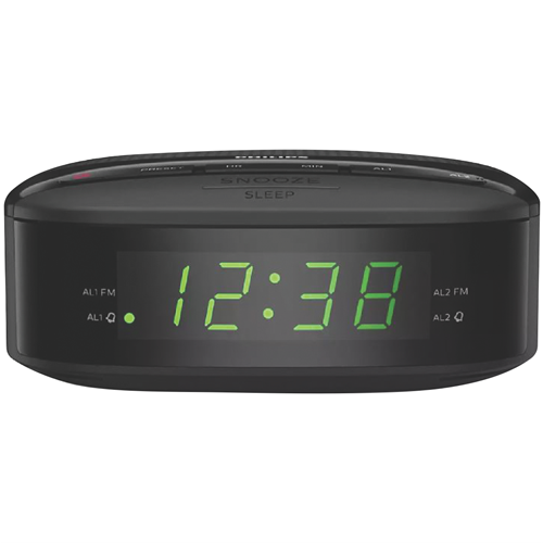 Wake up refreshed with the Philips Clock Radio. This sleek black radio alarm clock features a bright LED display and 10 station presets so you can easily tune in to your favorite FM radio stations between 87.5 to 108 MHz. The full range 2 speaker delivers crisp clear sound to start your day right. Set the dual alarm to wake you at your desired time. Or use the battery backup to maintain alarm settings in case of power interruption. With a compact design and easy-to-use controls the Philips Clock Radio seamlessly fits on nightstands and shelves in bedrooms and kitchens. Keep track of time and enjoy your favorite radio programs with this versatile clock radio. Stay on schedule and wake up on time with help from the convenient Philips alarm clock. The manufacturer's part number for this product is TAR3205/98. Add this reliable radio alarm to your cart today.