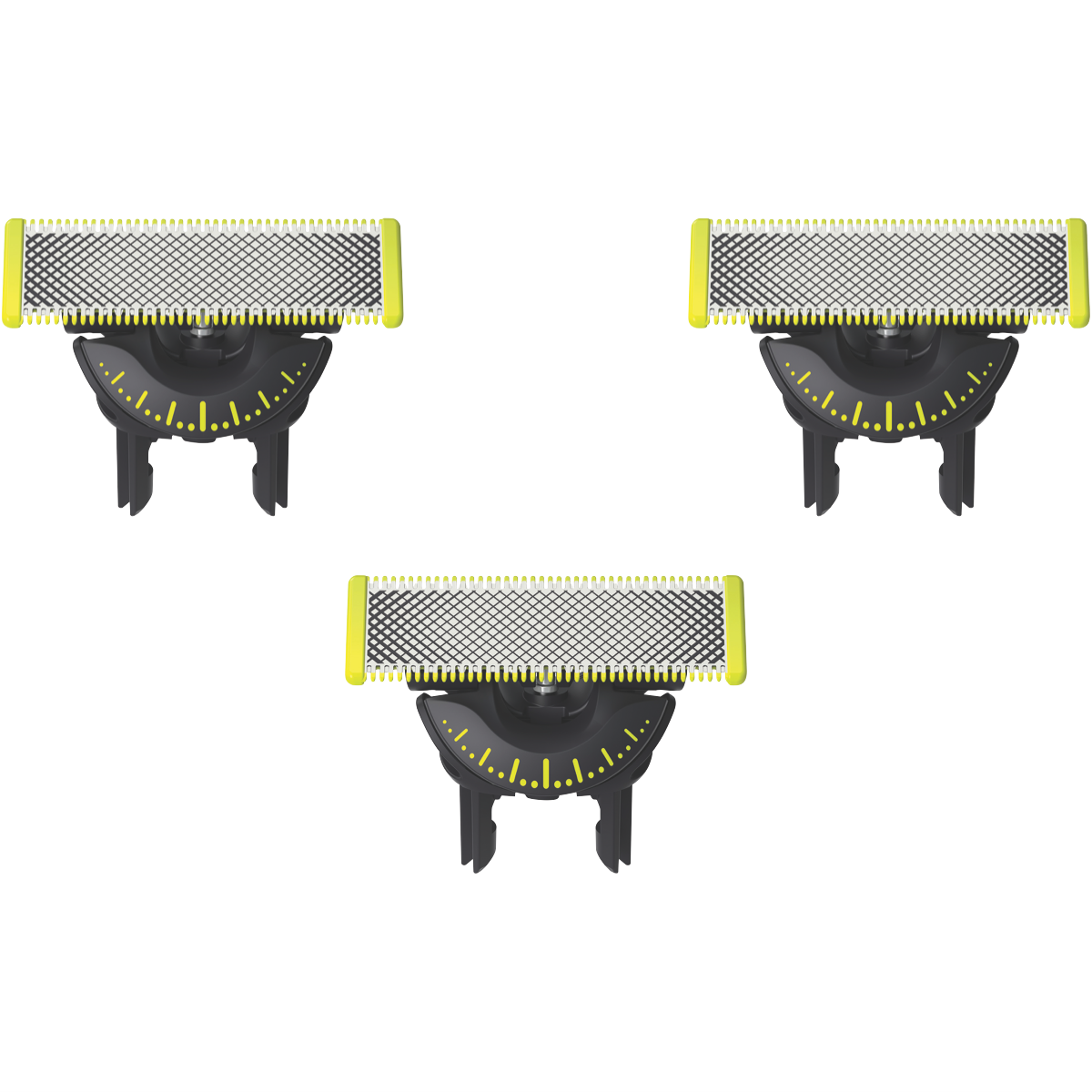 Achieve a smooth stubble-free shave with the convenient Philips One Blade (360) Face Replacement Blade 3 Pack. The innovative stainless steel blades effortlessly trim edge and shave any length of facial hair while maintaining skin comfort. Featuring a dual-sided design these replacement blades seamlessly fit all OneBlade shavers for versatile facial grooming. The wet and dry functionality lets you shave with gel or foam for enhanced skin protection or dry for convenience. With an extra 2 blades this 3 pack ensures you can maintain peak shaving performance. The blades follow the contours of your face to cut hair evenly for an easy gentle shave. Maintaining an impeccable shave is a breeze with these replacement blades. The manufacturer's part number for this product is QP430/50. Give your OneBlade a fresh set of blades for optimal shaving results.