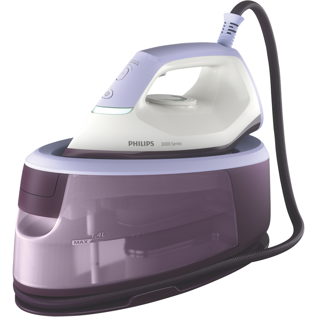Say goodbye to ironing hassles with the Philips Perfect Care 3000 Series Steam Generator PSG3000/30. Equipped with a ceramic soleplate and a powerful 6 bar pump this steam generator delivers an impressive 120g/min of continuous steam and a 350g steam shot to tackle even the toughest wrinkles. The generous 1.4L removable water tank lets you iron for longer without interruptions while the lightweight and compact design makes storage a breeze. With a speedy 2-minute heat up time auto shut off for safety and compatibility with tap water ironing has never been more convenient. Plus the Smart Calc Clean system ensures long-lasting performance. Enjoy the freedom of vertical steaming for hanging garments and the peace of mind that comes with a 2-year manufacturer's warranty. Transform your ironing experience with the Philips Perfect Care 3000 Series Steam Generator PSG3000/30.
