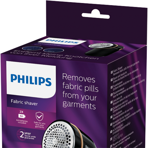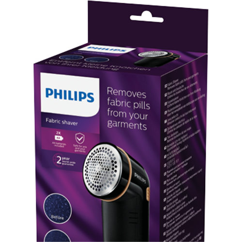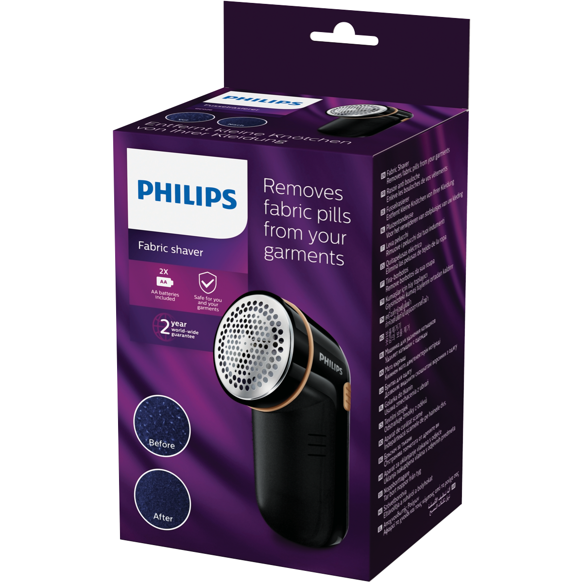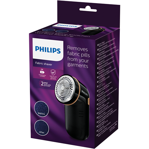 Remove fabric pills and fuzz from your garments with ease using the Philips Pill Remover. This fabric shaver comes in a stylish black and gold color and features height adjustment so you can customize the shaving experience. The adjustable height control cap allows you to adapt to multiple fabrics. Suitable for all garments this handy gadget makes refreshing old clothes a breeze. The pill remover's two integrated AA batteries provide the power to gently remove those unsightly bobbles and balls from your favorite sweaters and pants. Philips includes a 2 year warranty so you can shave with confidence. Say goodbye to pilling and hello to refreshed garments with this must-have fabric shaver. The manufacturer's part number for this product is GC026/80. Bring your old clothes back to life with the Philips Pill Remover today.